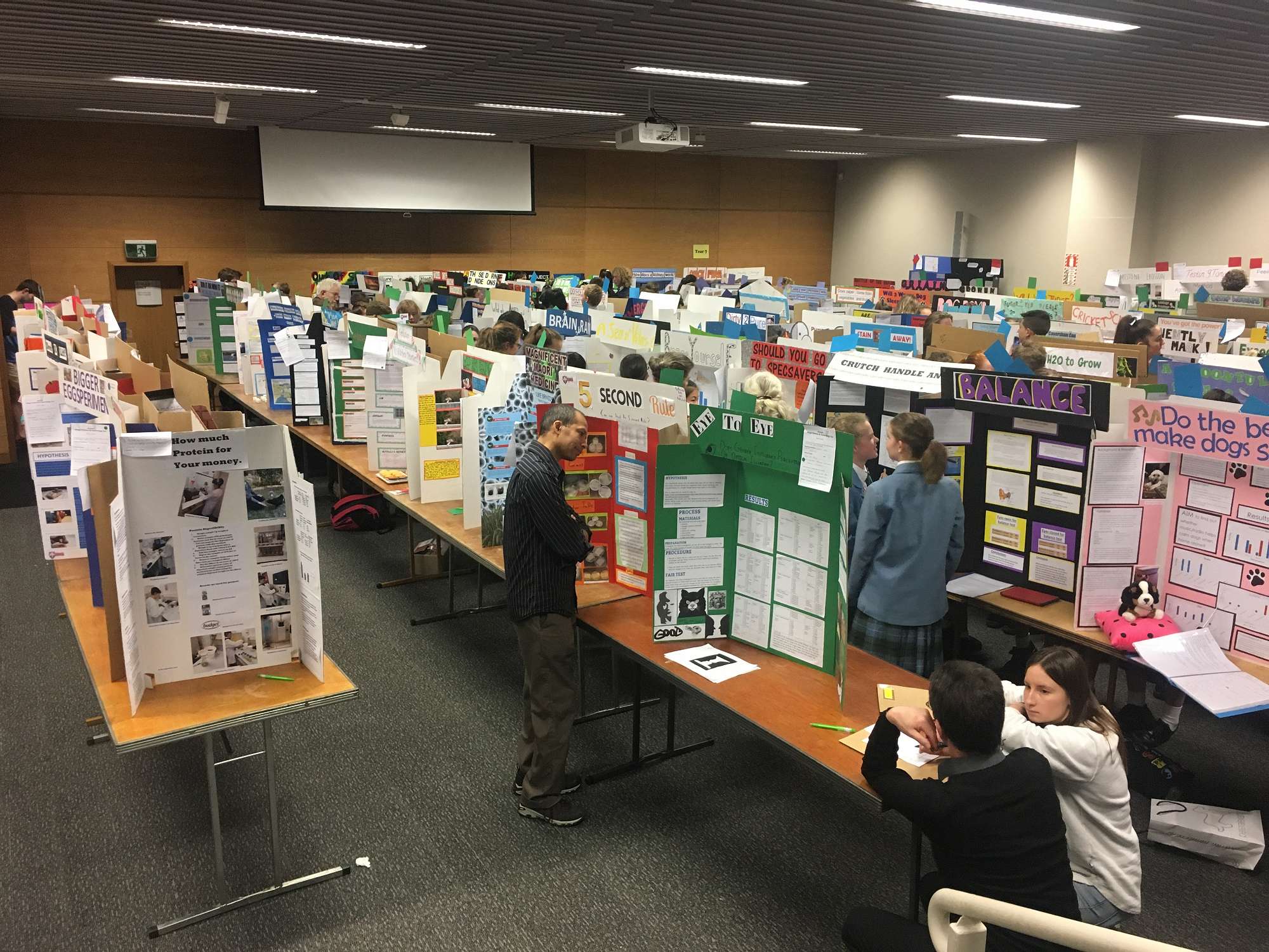 I was most impressed by the number of different ideas that were investigated well and presented most professionally. It is important to attract people to your investigations. Capture the attention of your “audience” now by having an interesting idea, “do the science” properly. I was pleased to see the words hypothesis and abstract, variables, method, results or data and conclusions (what did you find out!), you are doing good science.