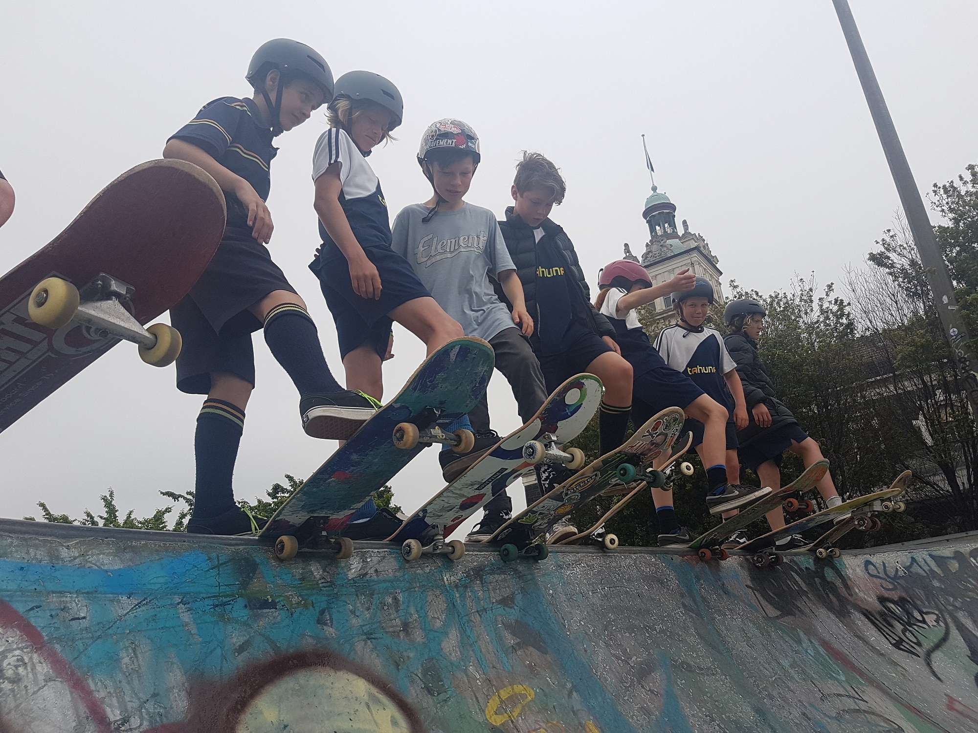 During the last two terms we have been participating in Mr Min's skateboarding \ scootering group held at lunchtimes. We met weekly on the courts and showed each other our latest tricks. We celebrated at the end by heading over to the park shredded it up in the bowls.