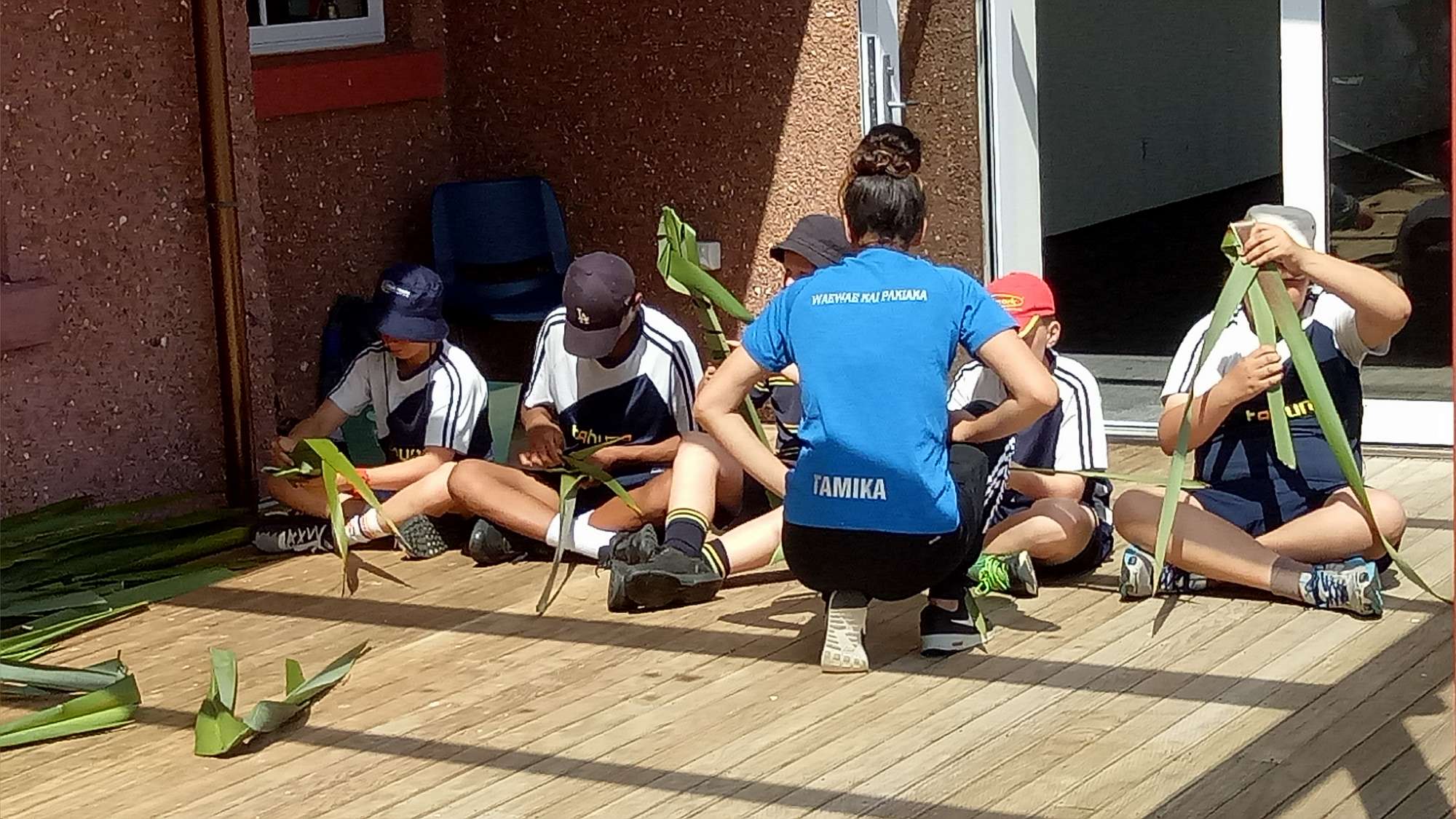 Students were taught how to make putiputi (flowers) with harekeke (flax). The tradition in Maori is to give away your first harekeke creation and because our students had all made something with harekeke before, they were able to take these home.