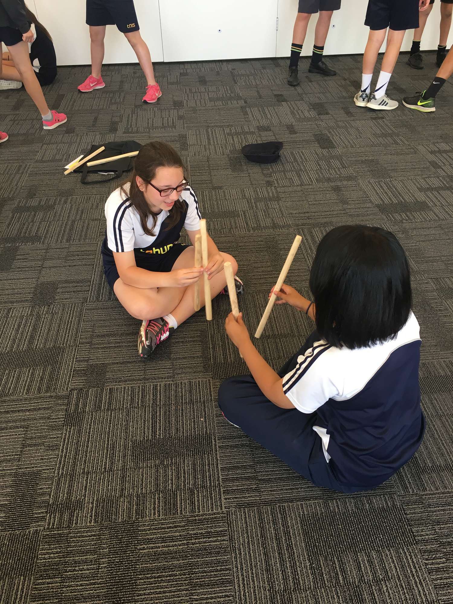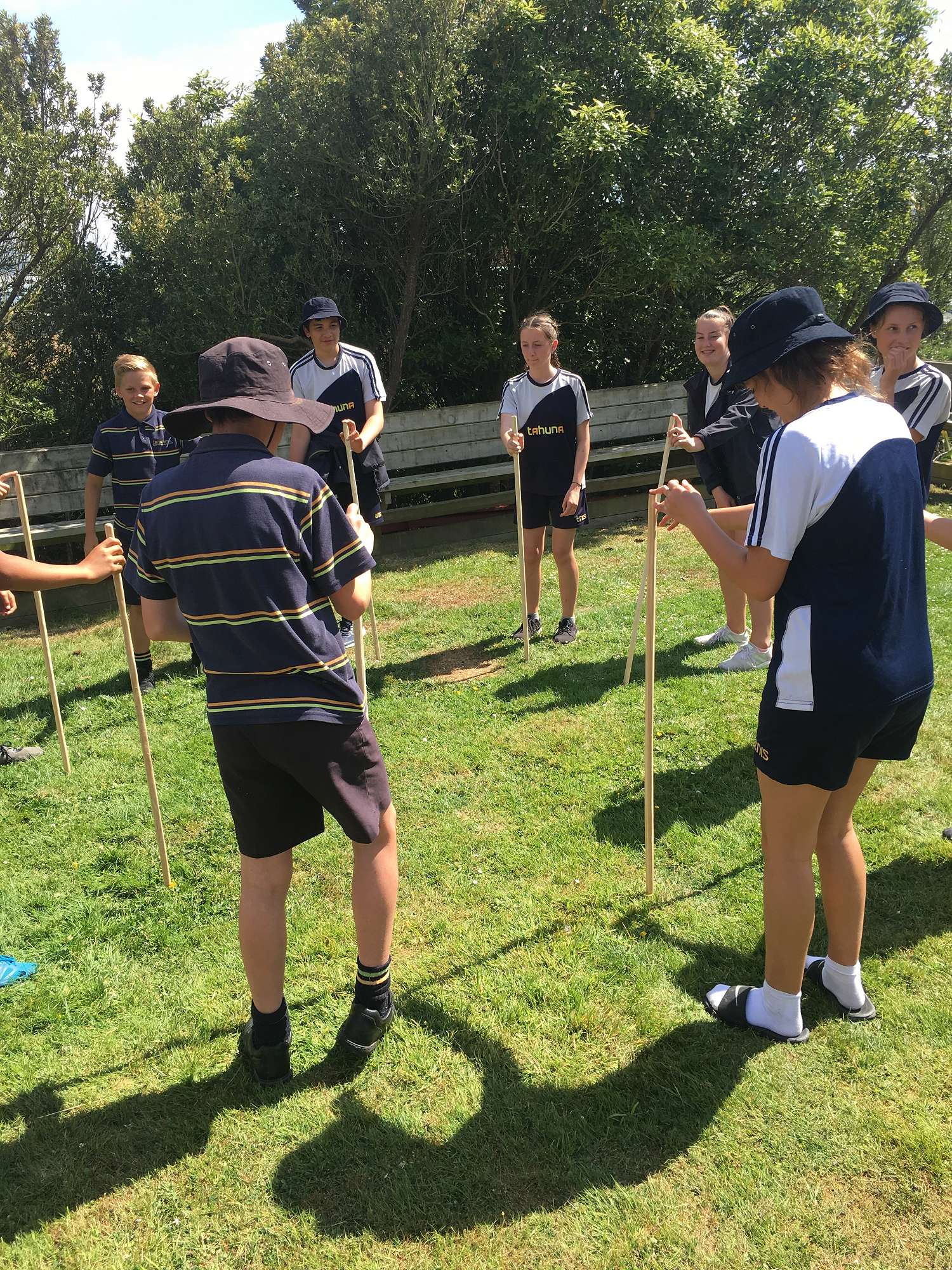 We had a great time learning some traditional games. Ana Halalilo-Rouvi assisted with these and had the students laughing and excited throughout the session. We made rakau (sticks) in the workshop at school and brought these out to the marae to play more traditional games.
