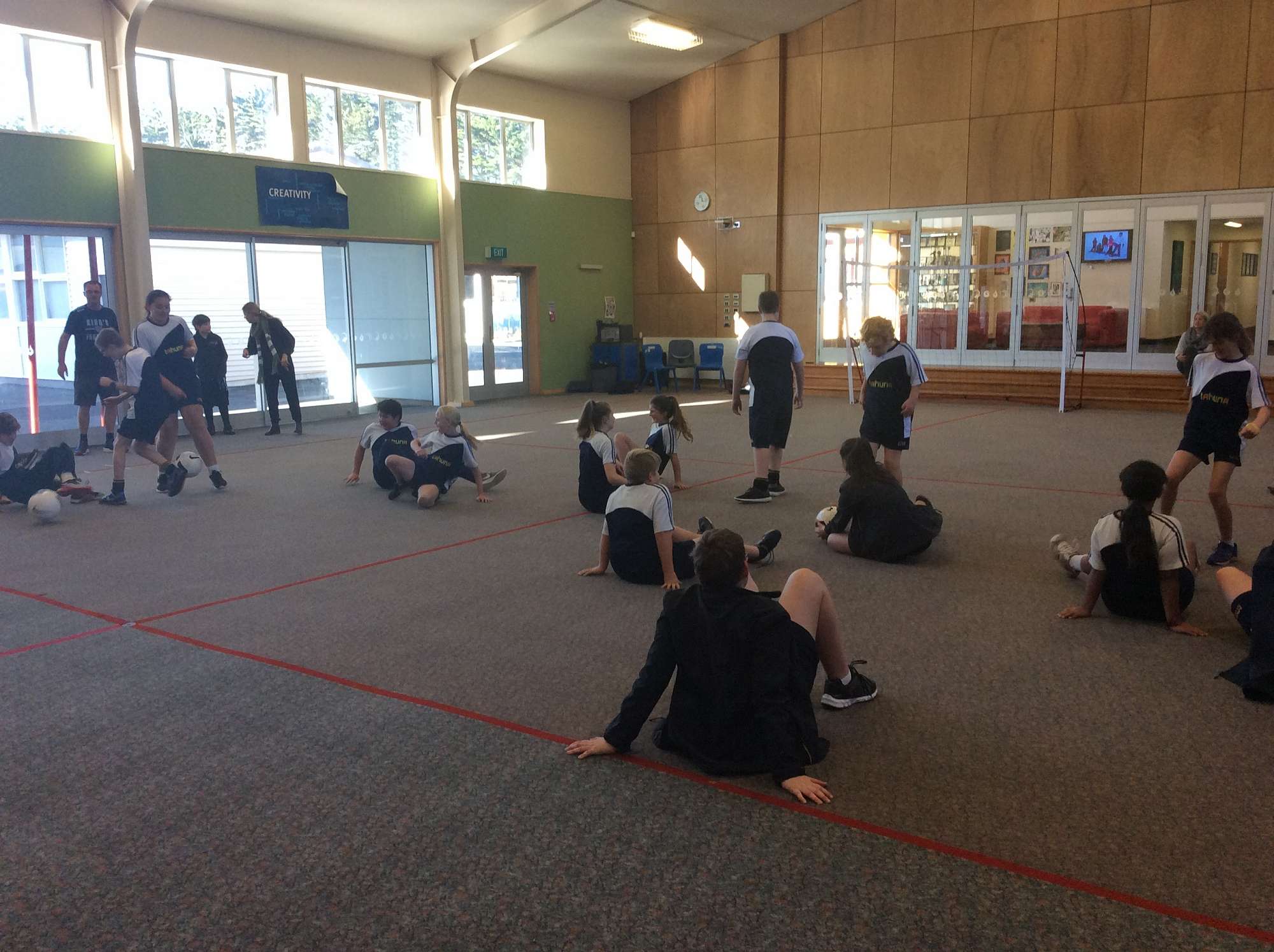 Room 6 did some warm-ups to start our session then we played a game of crab soccer. The crab soccer helped us not to use our hands.
