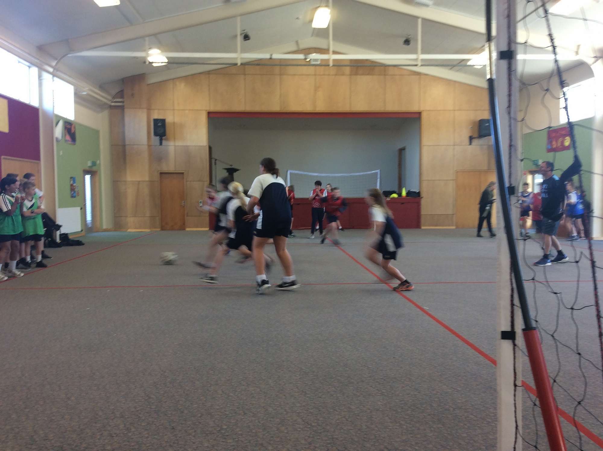 The last game room 6 played was an indoor game of soccer in four different teams. Each team got subbed on and off when there was a goal scored.