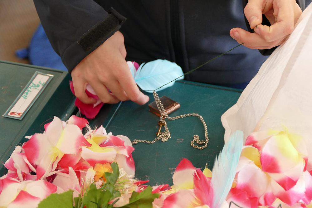 Our dress is very unique. We have based our creation on “The queen of cards” from Alice in wonderland. The dress base is an old dress which we are connecting to a pair of overalls and we are working to layer playing cards onto it. We also have clubs, hearts, spades and diamond magnet shapes which we are adding to the top of the overalls. We have been working hard and can’t wait to see the outcome.