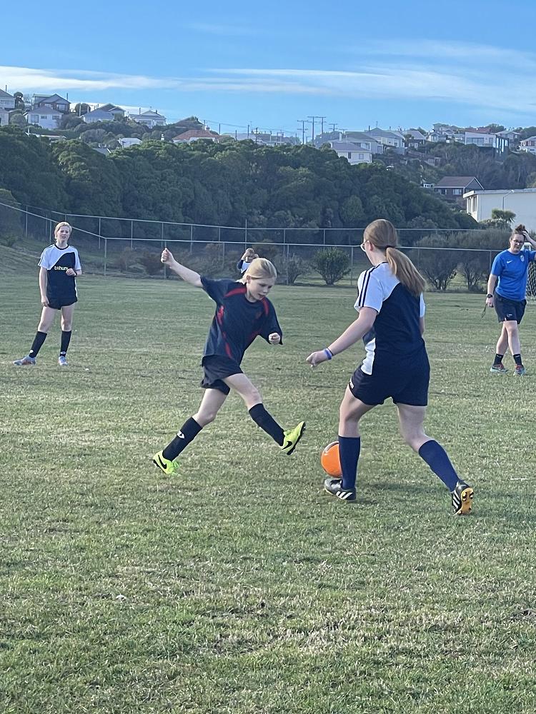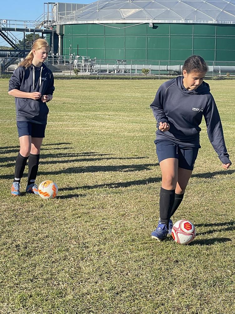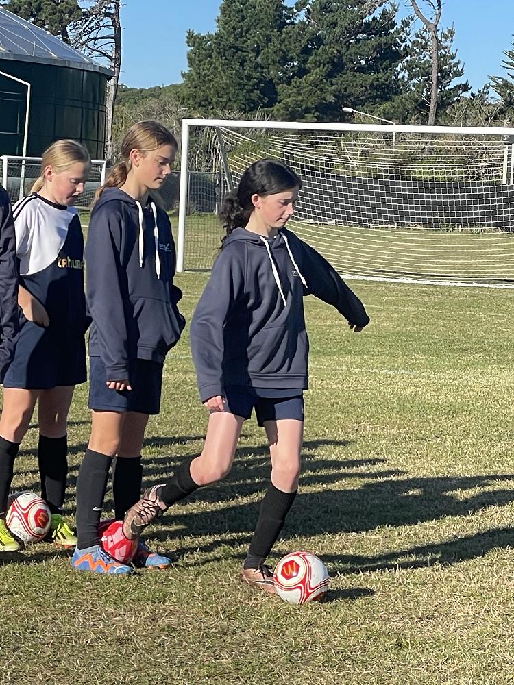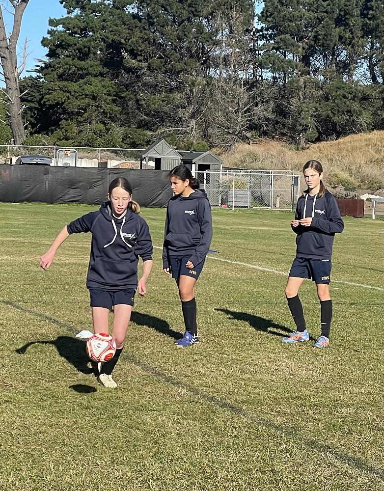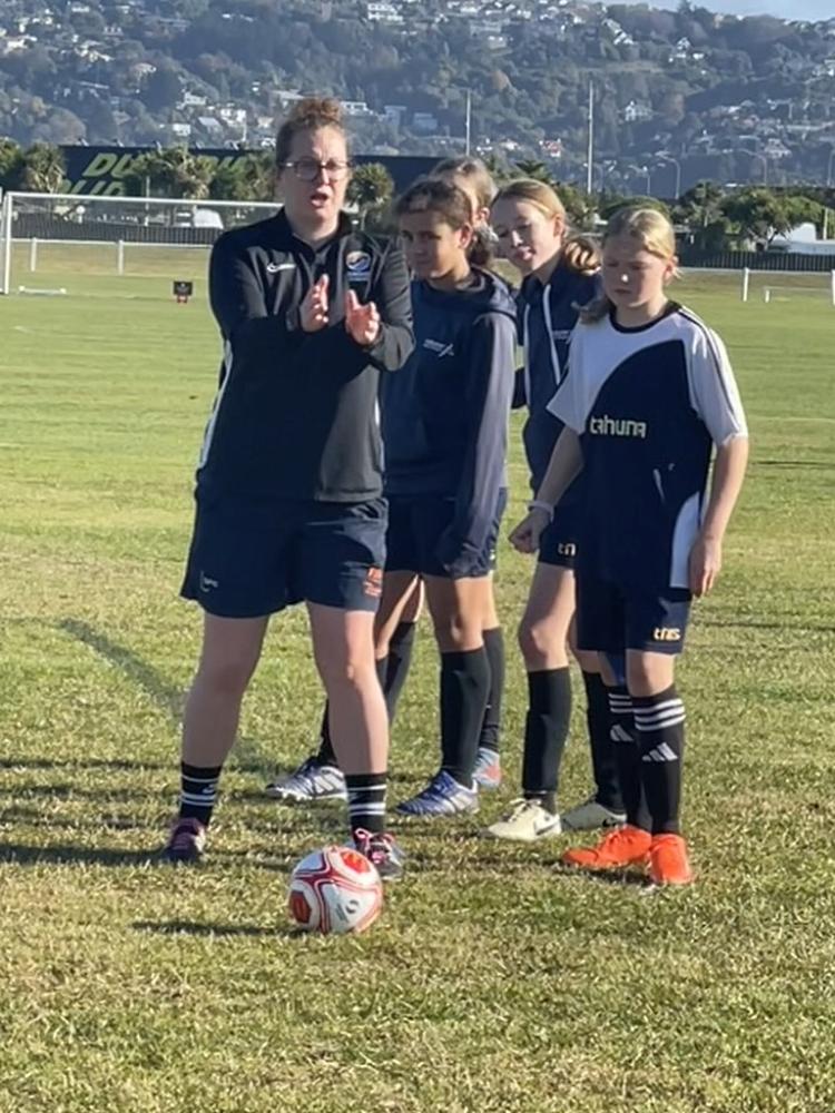 The girls at Tahuna wanting to improve their football skills are lucky enough to have training sessions from Southern Football Female Development Officer Grace Teah.