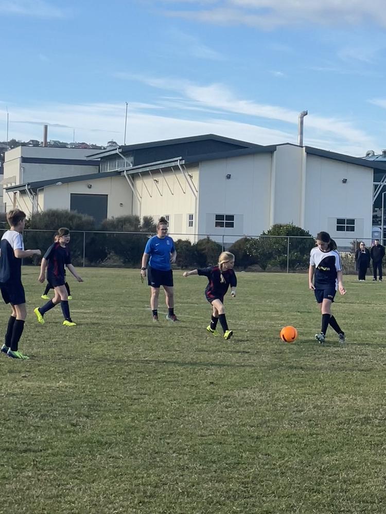 Female Development Officer Grace Teah takes Football training. A big thanks to Grace for offering to ref our Tahuna girls vs Balmacewen Intermediate game.