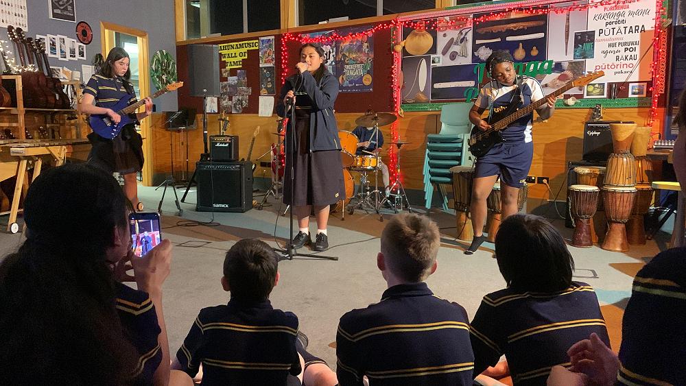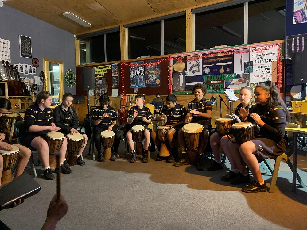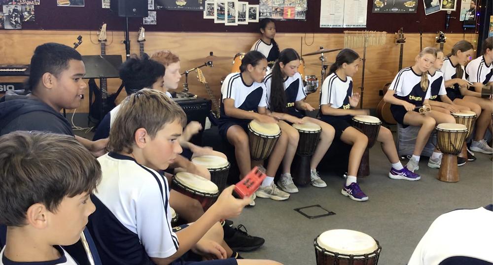 With two rockbands performing at BandQuest, a djembe and a marimba band, ukulele mornings, the orchestra and ongoing lessons in drums, cello, sax and more, Tahuna never stops jammin'.
