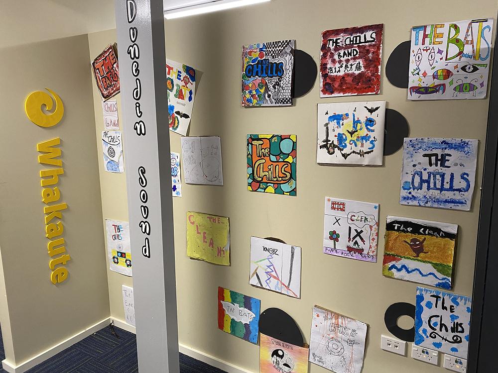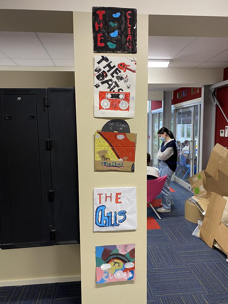 A few days ago we started “Dunedin Sound”. We watched a video (from the 80's) of a reporter interviewing Dunedin bands. In the video they talked about “Flying Nun'', a record company based in christchurch. “Flying Nun” made a label for three Dunedin bands, “The Chills”, “The Clean” and “The Bats”. Soon after we started making title pages in our reading books.