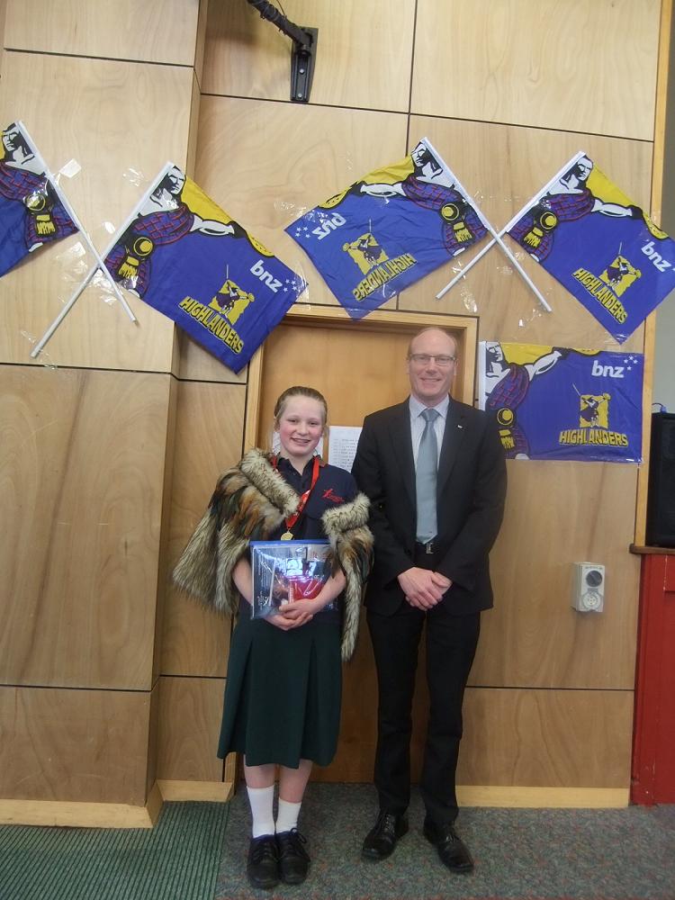 Congratulations to Lily Taylor, who is the Tahuna recipient for 2015, having met all the criteria for this prestigious leadership award. Mr Allen Anderson, Branch Manager of the South Dunedin Westpac branch presented her with the medal and leadership pack. She was then bestowed the school korowai from Mr Hokianga in recognition of this very special achievement.