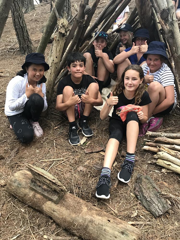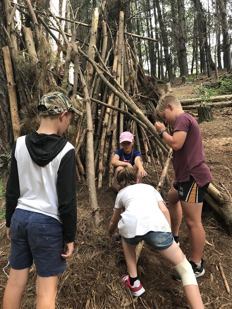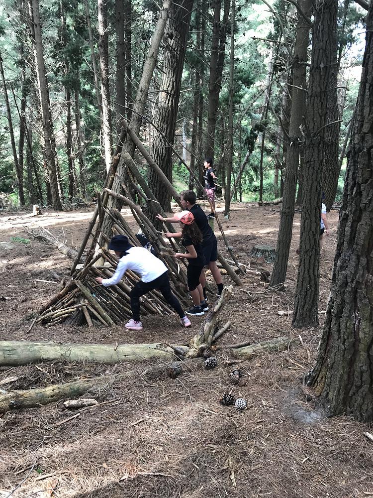 Our group shelters were judged on building structure (Wind and rain protection and warmth), group work (Everyone working together to make the construction) and creative presentation to the class (Selling the special features).