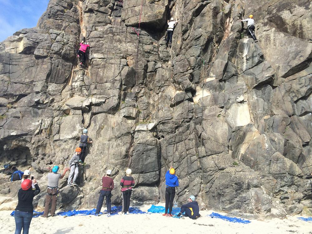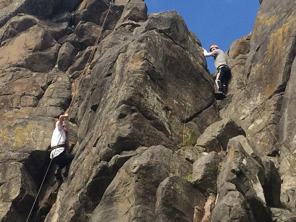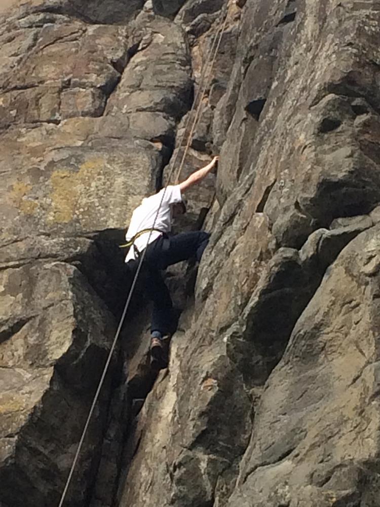 It was my groups turn to climb the tough terrain of the cliff. It was very vital to listen to the instructors safety advise because our peers life was in the palm of our hands. We strapped ourselves in and started making our way up the cliff. Some people were scared, some were anxious, but most people were full of fear. Everyone was encouraging each other, pushing their peers to go further.