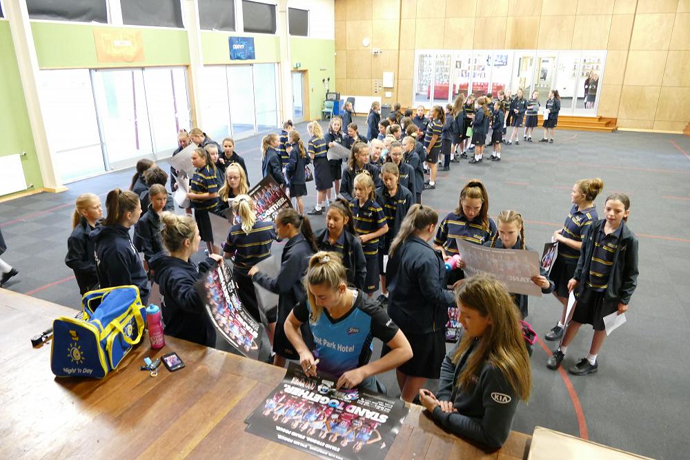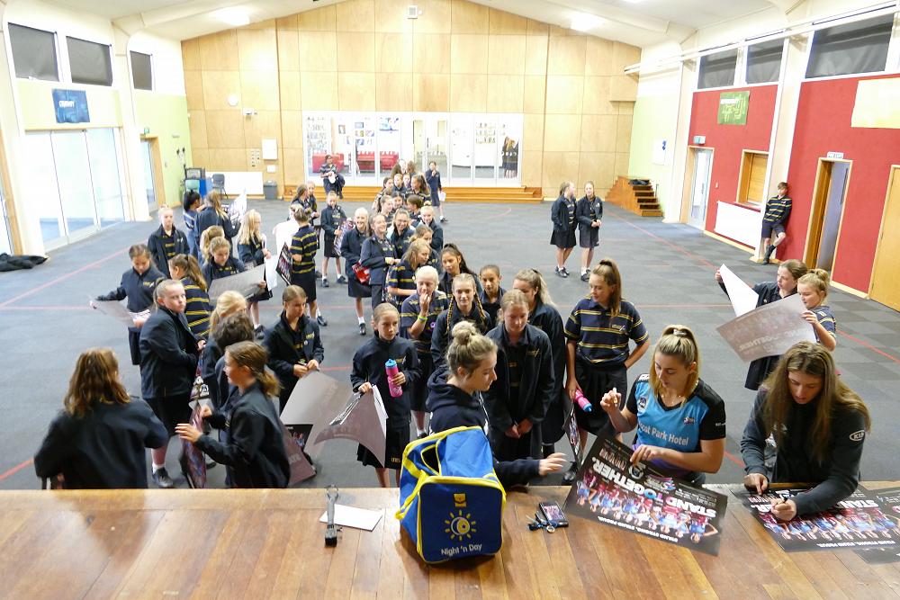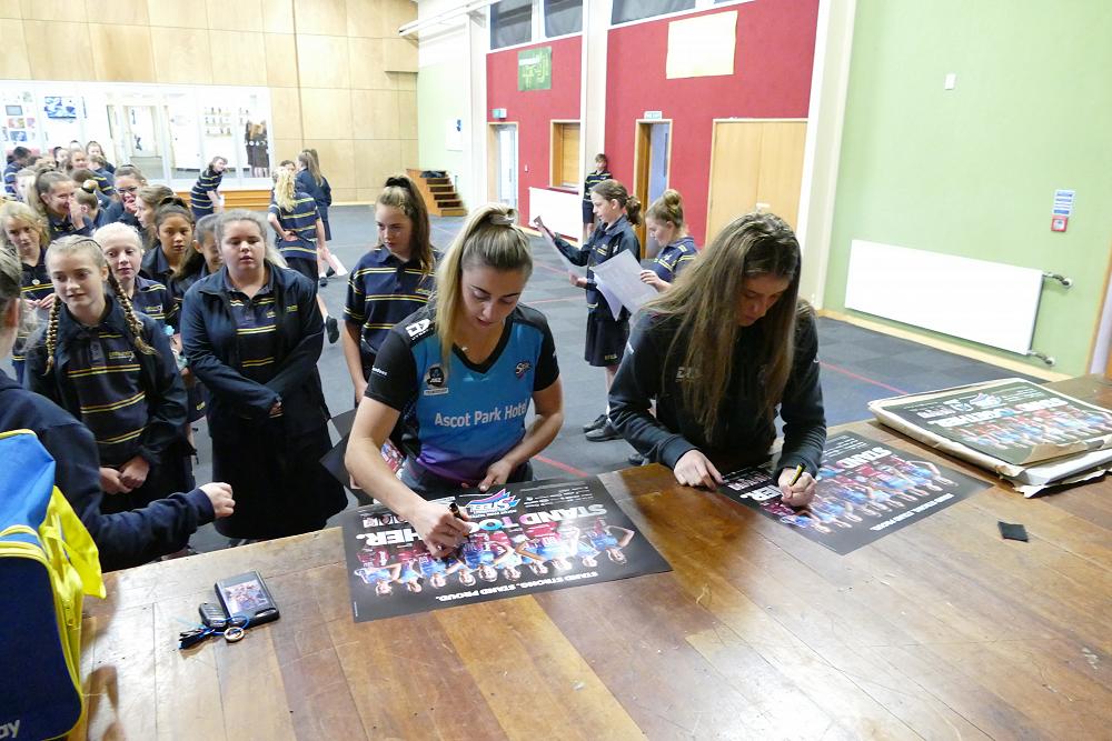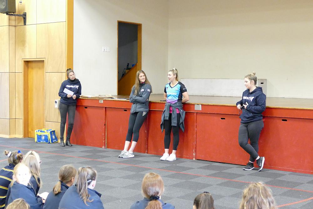On Friday 5th April, Gina Crampton and Kate Heffernan two members of the Southern Steel netball team came and ran a press conference in the hall. Students had the opportunity to answer questions and get autographs.