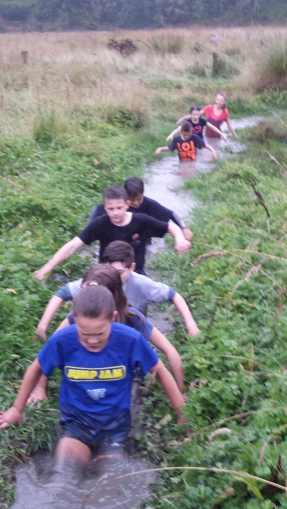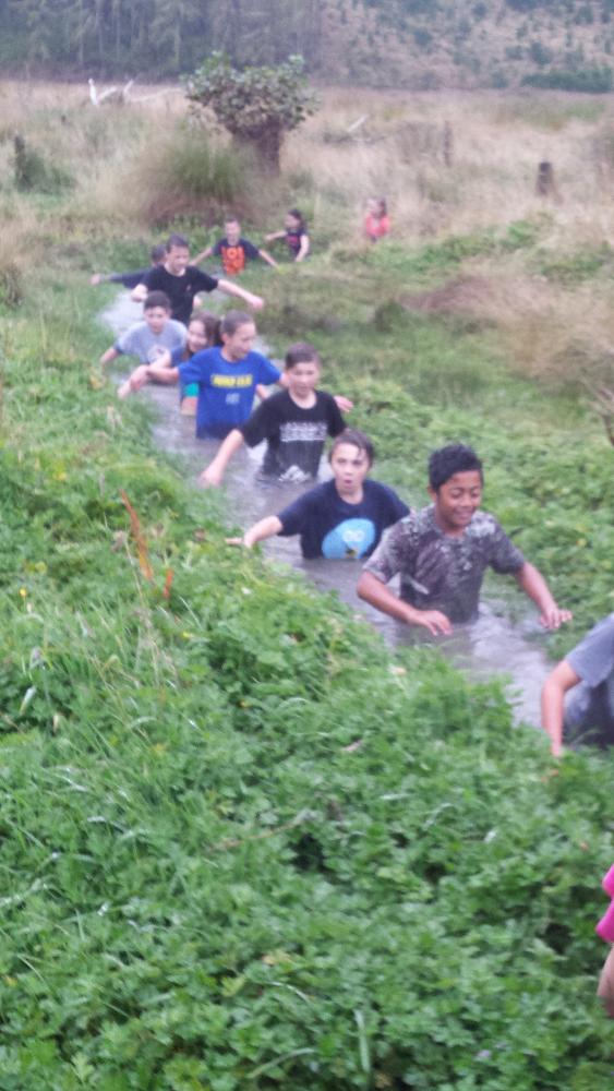 I woke to to hear pouring rain. Mrs McBride woke us up and asked us to change into our filthiest clothes........My heart sunk slightly, but a part of me was excited at the same time. We assembled in the lounge and did some exercises to warm up our muscles. Mrs McBride put us in to groups competitive v's non competitive. She then took us out to walk us around our last group challenge. It was way more intense than what I was expecting, but I couldn't wait to get amongst it. Then she broke the news competitive must complete the challenge twice and non competitive once.........how is this fair I thought. It began.......It was falling in to a pit of sludge. the smell of what muck crawled up my nose. My shoes coming off as the mud from underneath sucked them in. We could feel mud going up our backs, as gross as it sounds we were having heaps of fun until the first humongous water spider floated past us! We were finally back on land then back through another creek. Once we climbed the bank we were faced with the biggest puddle of mud ever! "Yesssss we yelled victory is upon us, along with a whole heap of mud"!! This turned into more of a 'who can slide the furthest sort of challenge', it was amazing! Once we regrouped we continued on to face with more challenges, some more happy than others. A giant mix of emotions. But with positive energy and team support we made it to the end.......only to be greeted with a heavy duty fire hose, then into a well deserved, hot shower! Mud, swear and tears was most definitely the highlight of our camp!! We didn't think so at the start, but THANKS A BUNCH Mrs McBride.