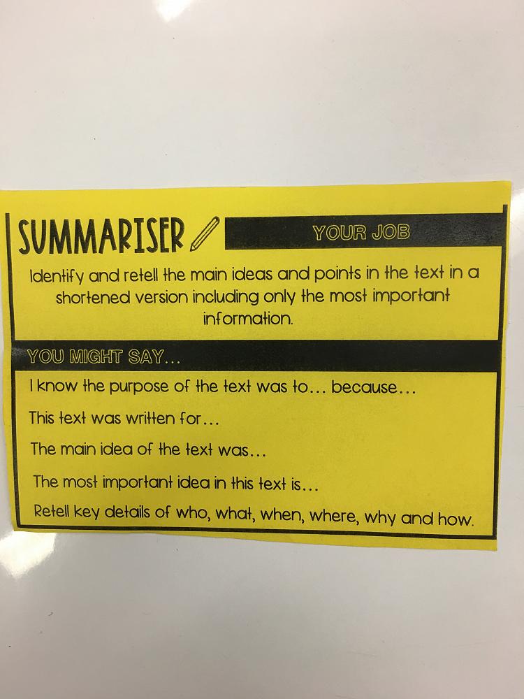 The key to making this a success was for the students to generate rich discussion within their group to aid in their meaning making and the critical thinking aspects of being an effective reader.