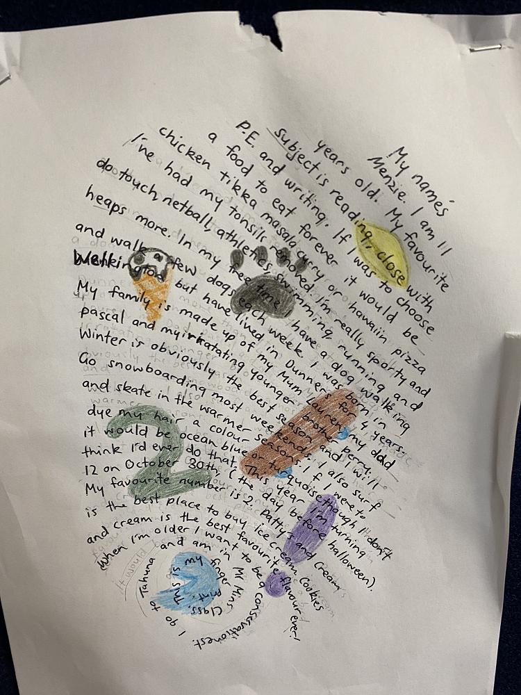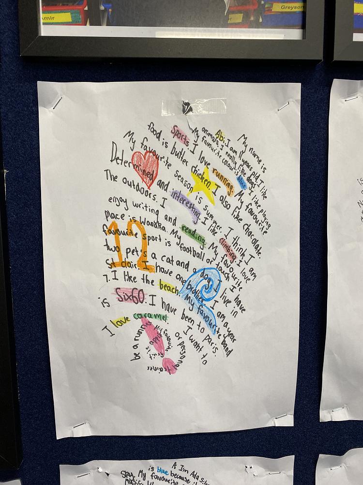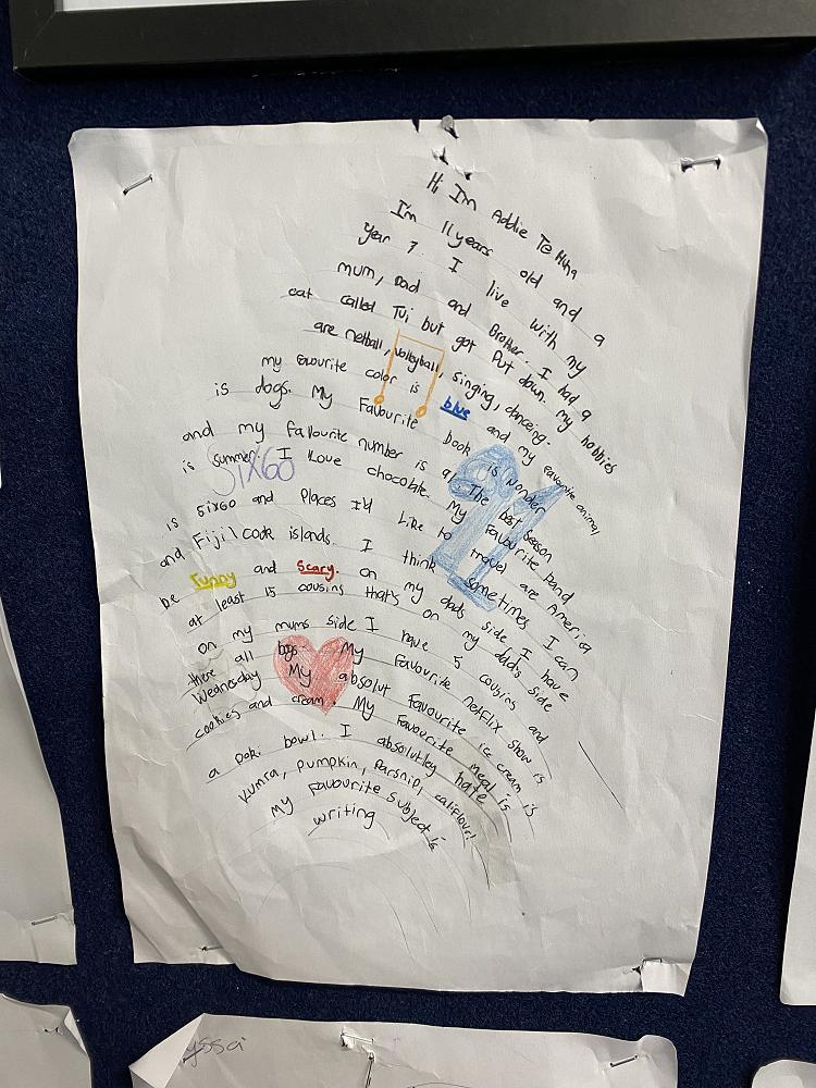 As part of our Kaitiaki of Self unit (being guardians of ourselves) R6 students have been writing all about themselves in a really unique way.