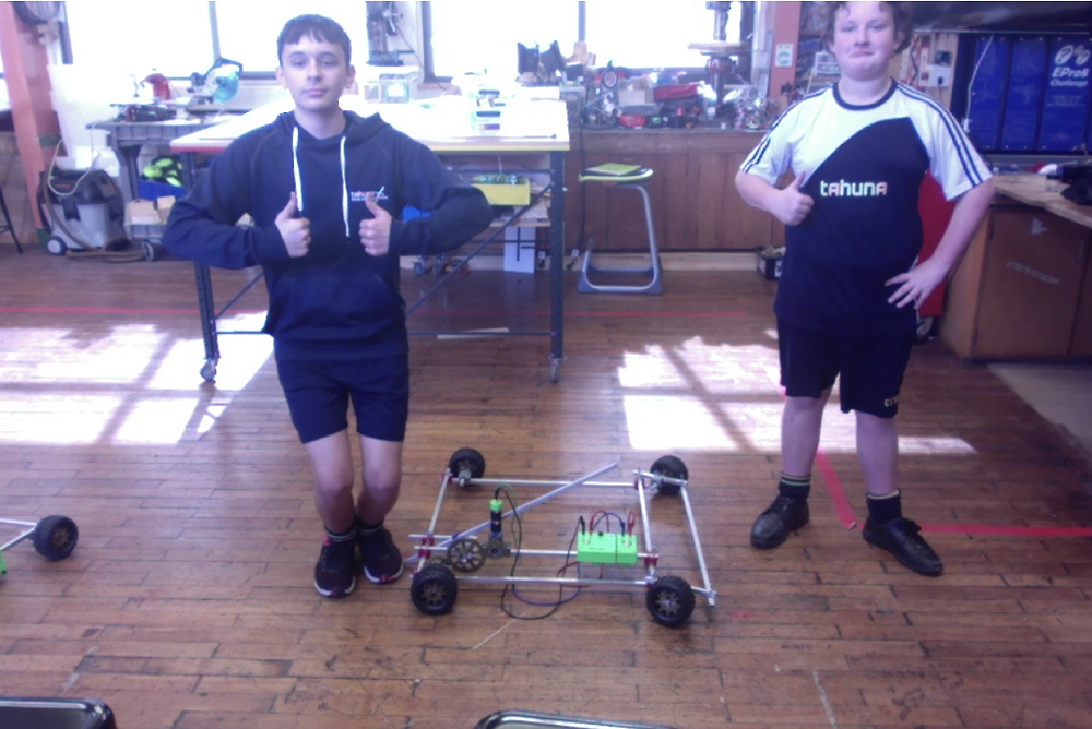E-Tech: The photo is a model of a prototype go kart. It took students 4 days. They have built a braking system with a working motor and a hand brake system. Next they are going to build the real go kart, including the seat.