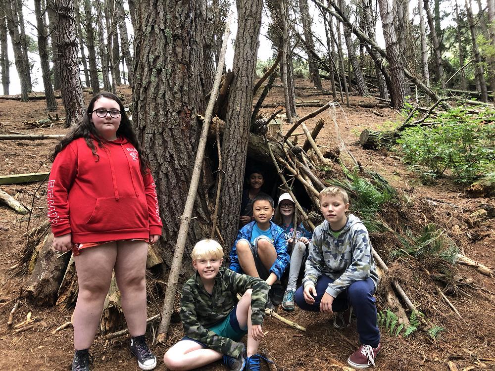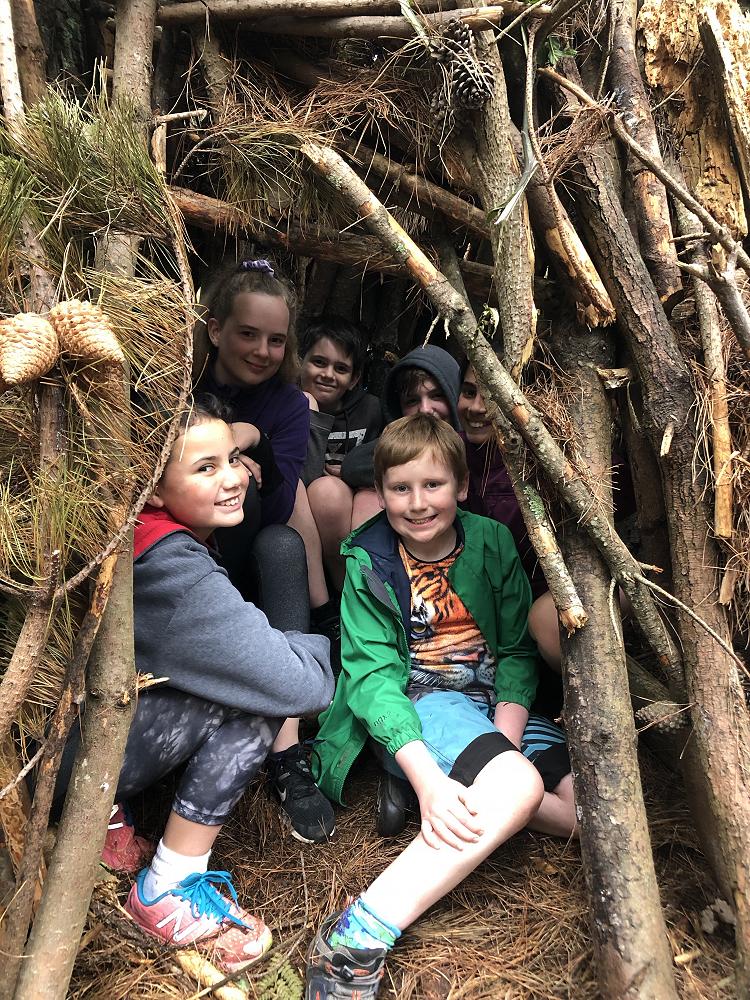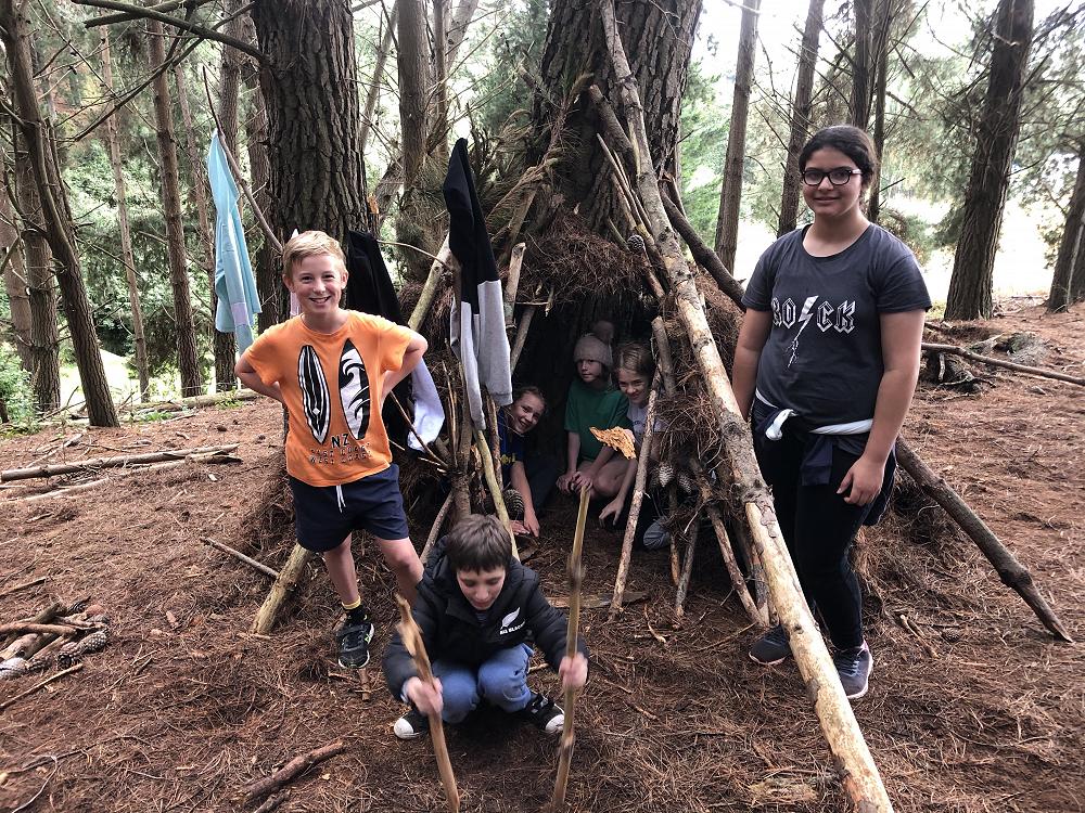 At camp we went into the trees and built bivvys. Everyone was in groups of six or seven. Some groups built theirs by taking a bivvy apart and using the sticks, others used sticks they found on the ground.There were a lot of sticks on the ground. Most groups did both. We had one hour to build the bivvys. Miss Walsh was coming round saying to add special features like a campfire. A lot of groups added campfires, coat hangers. My group added a window. It looked like a window because we had a little bit above it, so it looked like it had a blind that could go over it and it wasn’t just a hole. We also added a seat which was a log Samantha found. I made a bed with pine needles and we had pet pine cones. We had a washing line, coat hanger and food which was huhu grubs we found in a fallen down tree. The winners were Noah V, Ben, Kaia, Fletcher,Callum and Sam D. They won because of their great teamwork.