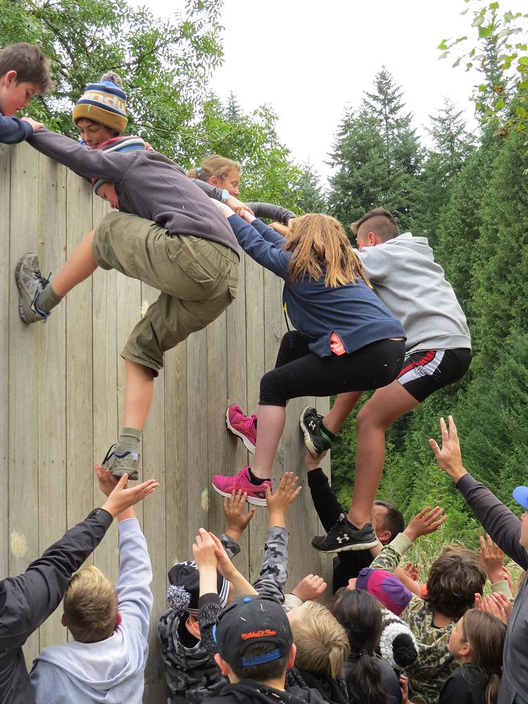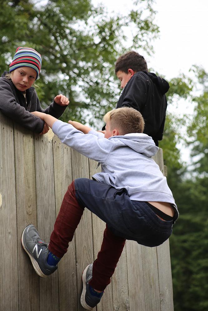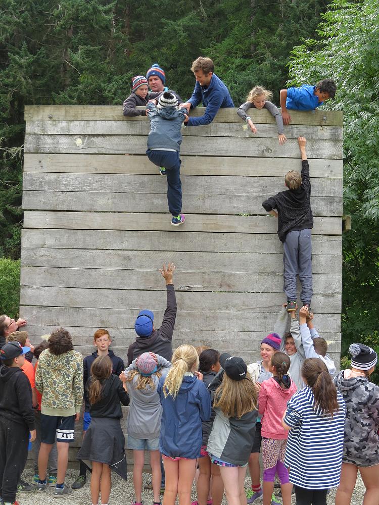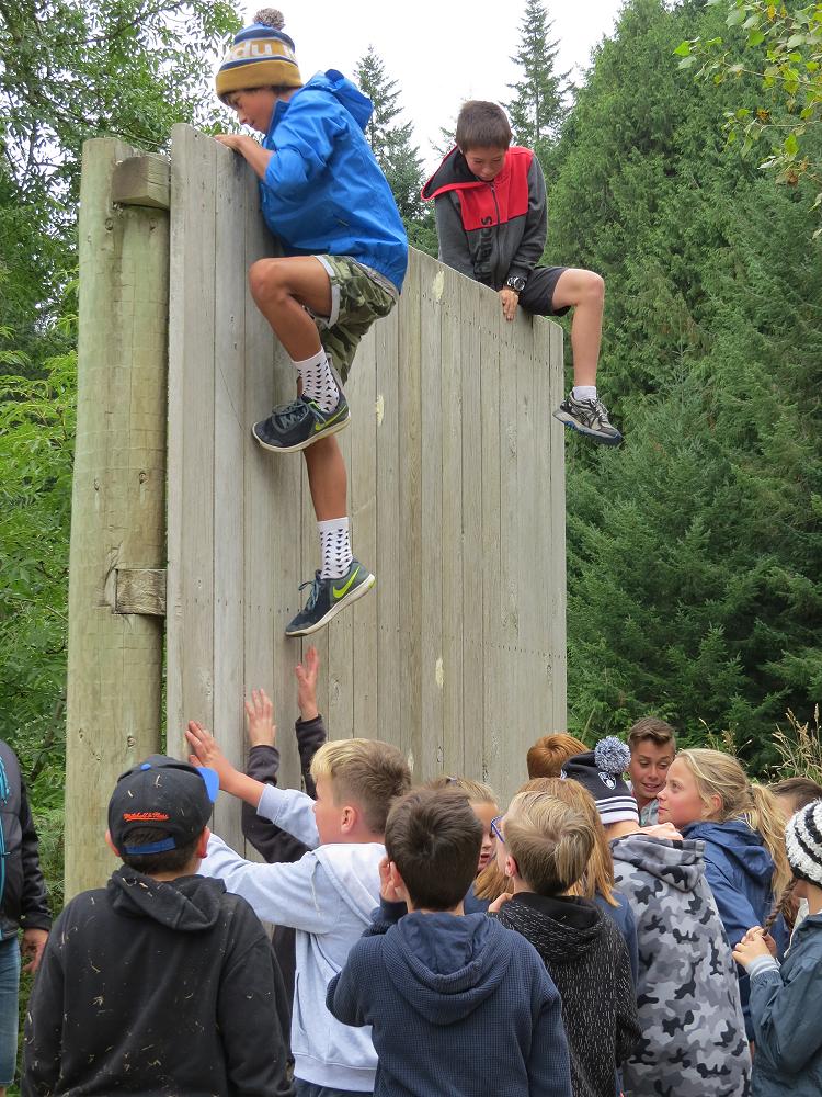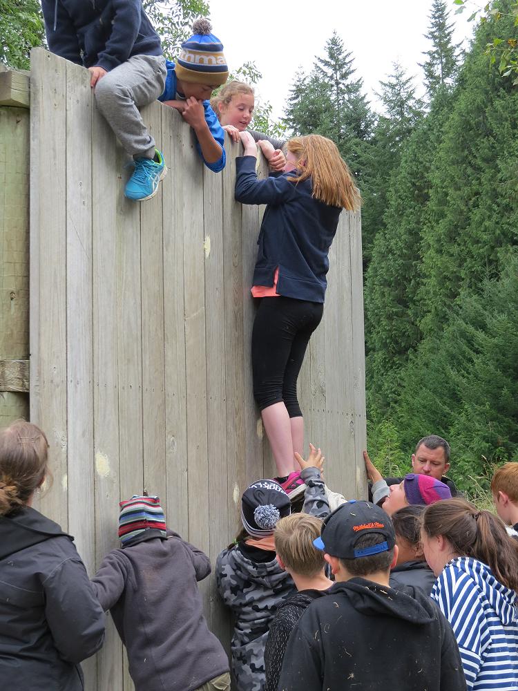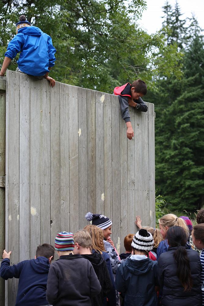 Climbing the high walls at camp was so much fun. The aim of this activity was to get as many people as possible over all three of the walls. The first wall was as tall as an adult, the second one was quite hard to climb, and the third one was massive. I got over all three of the walls, and I was the second one to get over the large climbing wall. I felt nervous at the start, but I found out that with a little bit of help from my classmates I could climb up and over the walls. Climbing the walls at camp was so fun!