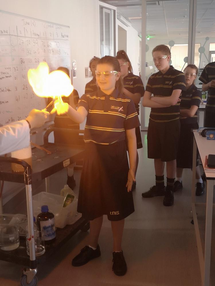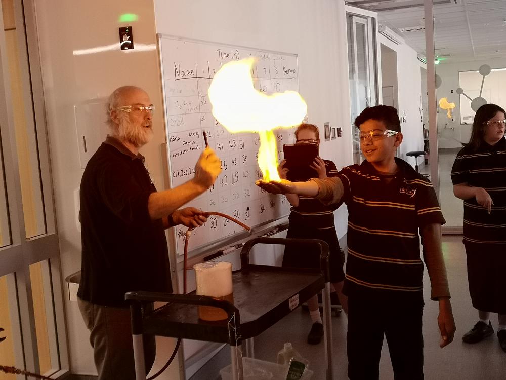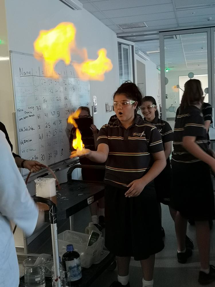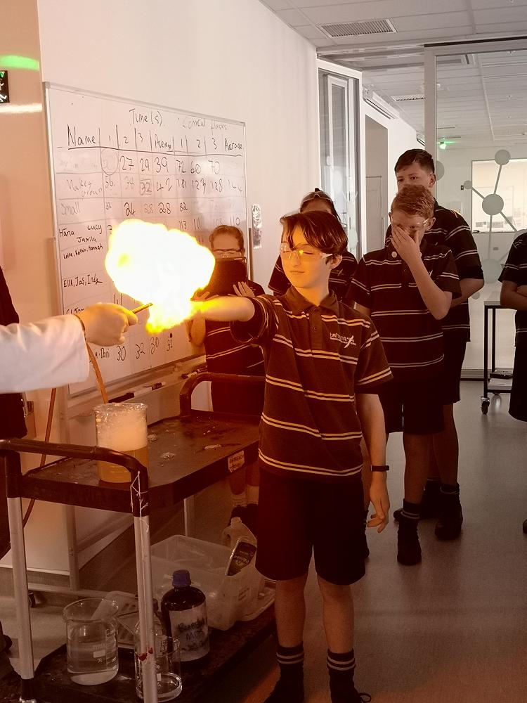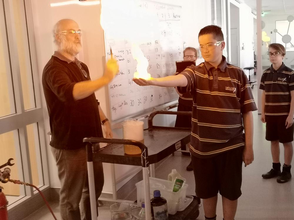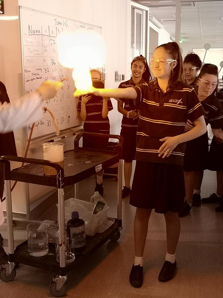 In the second experiment at the Otago University chemistry lab we looked at Density. This was a lot of fun. We learned how to accurately measure liquids. Towards the end of the lesson Dr Dave Warren lit our hands on fire. Although it was scary, it sure was a lot of fun!