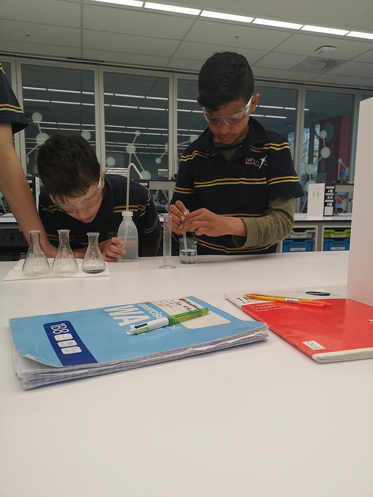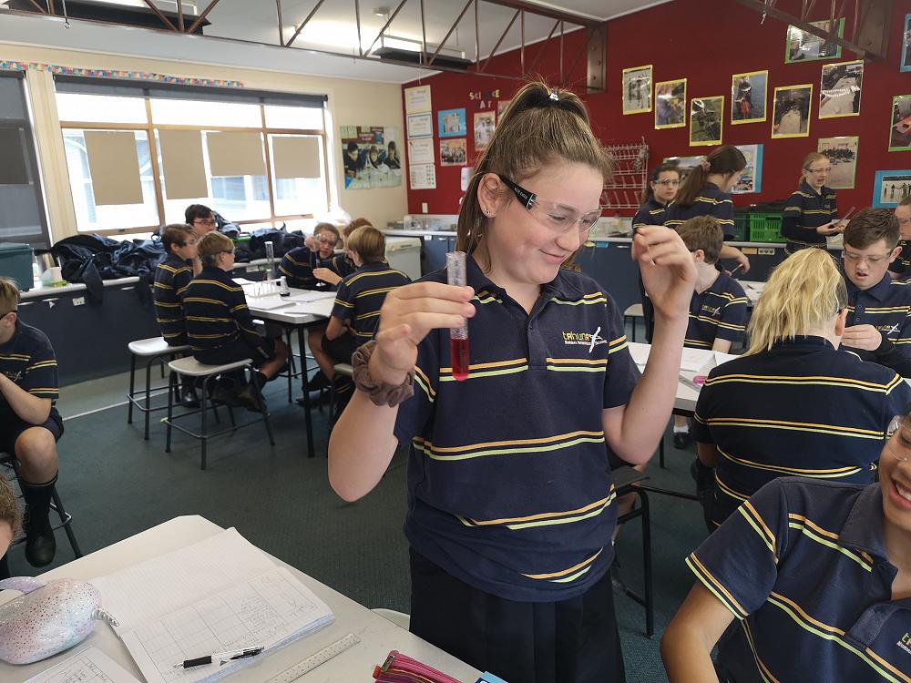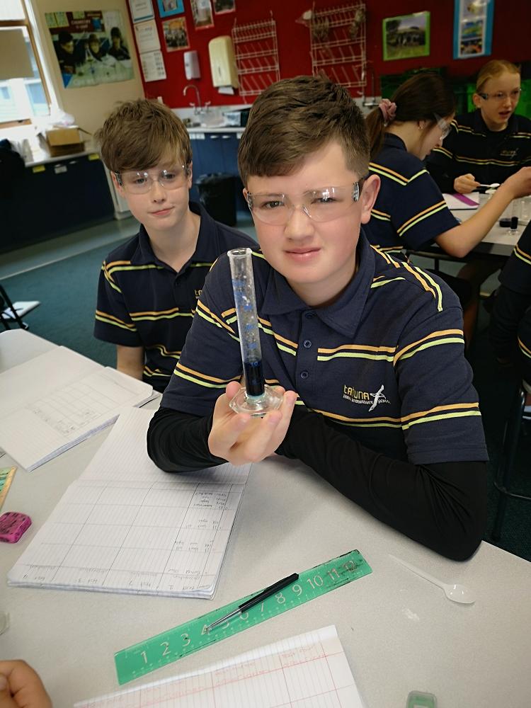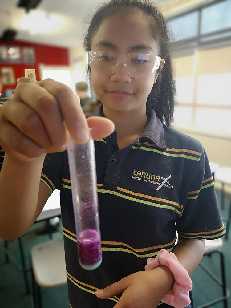In the first experiment in the Tahuna lab we tested mystery substances with an indicator to find out a reaction. We then learned about acid and alkaline. It was a lot of fun finding out why the substances turned different colours.