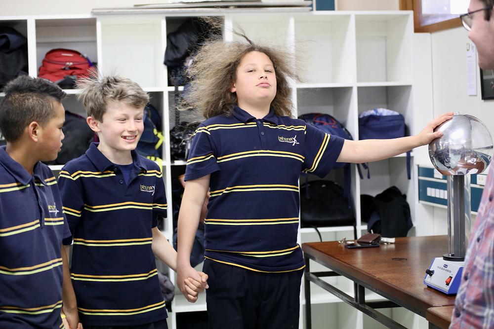 Last Wednesday Room 18 visited the Otago museum and the physics department at the University of Otago. We had a lot of fun looking at the exhibits at the museum and we especially loved visiting the butterfly enclosure. We then went through to the physics department at Otago university and learnt a lot about lights, electricity, and even got to experience what it is like to touch a van de graaff generator. Here are some photos of our experience. Enjoy!