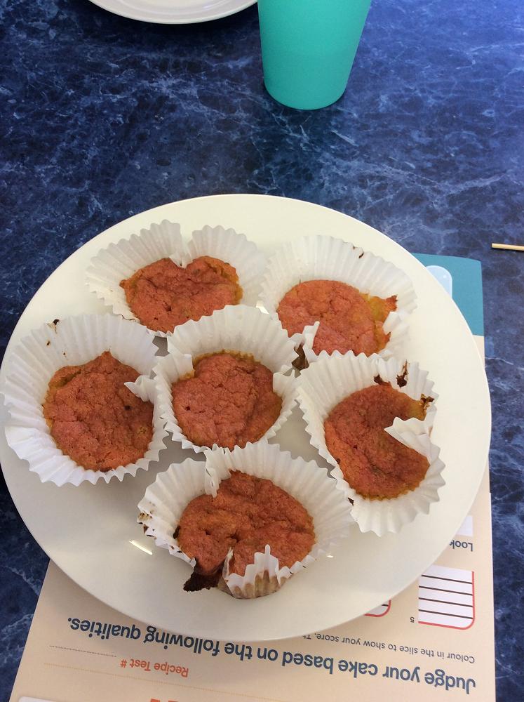 Then they were required to design a cake formula that reduced the amount of sugar and also substituted in 80g 'vegetables' (chickpeas, beetroot, corn, black beans, peas).