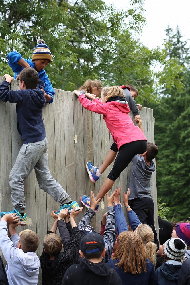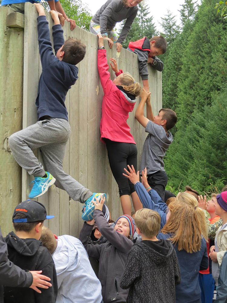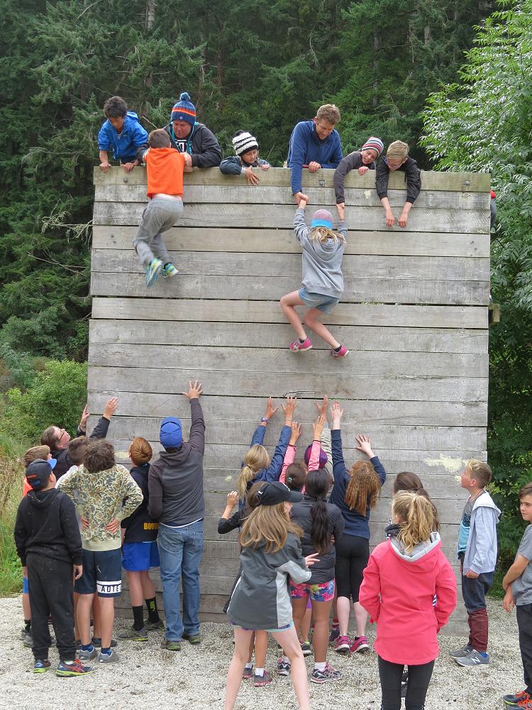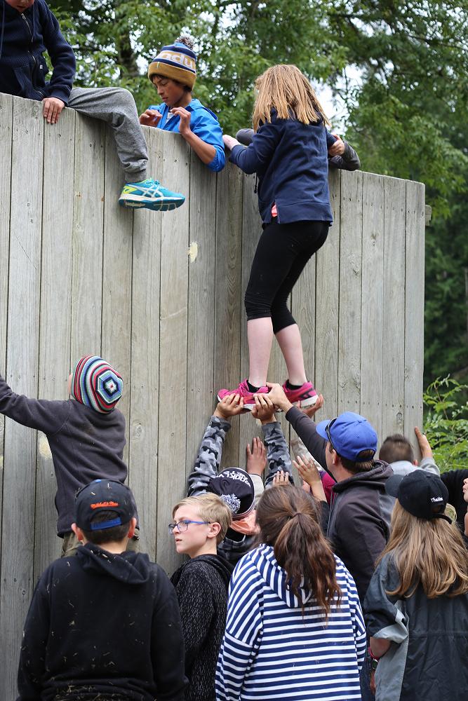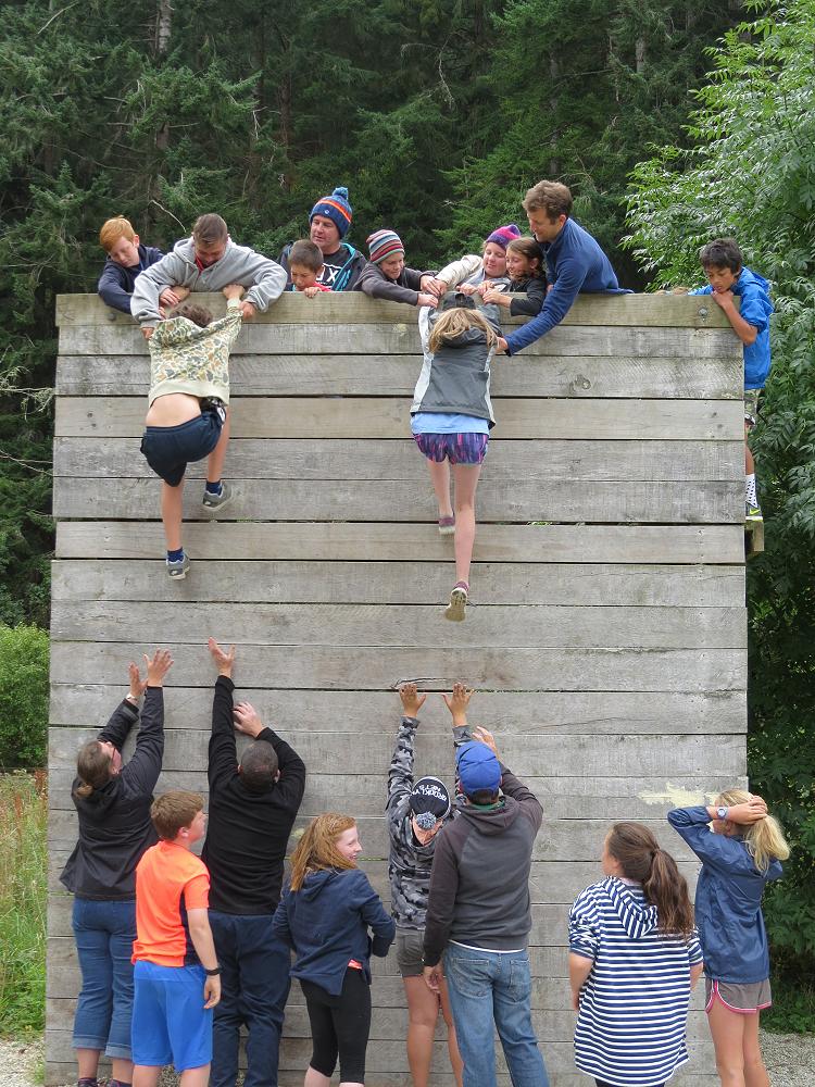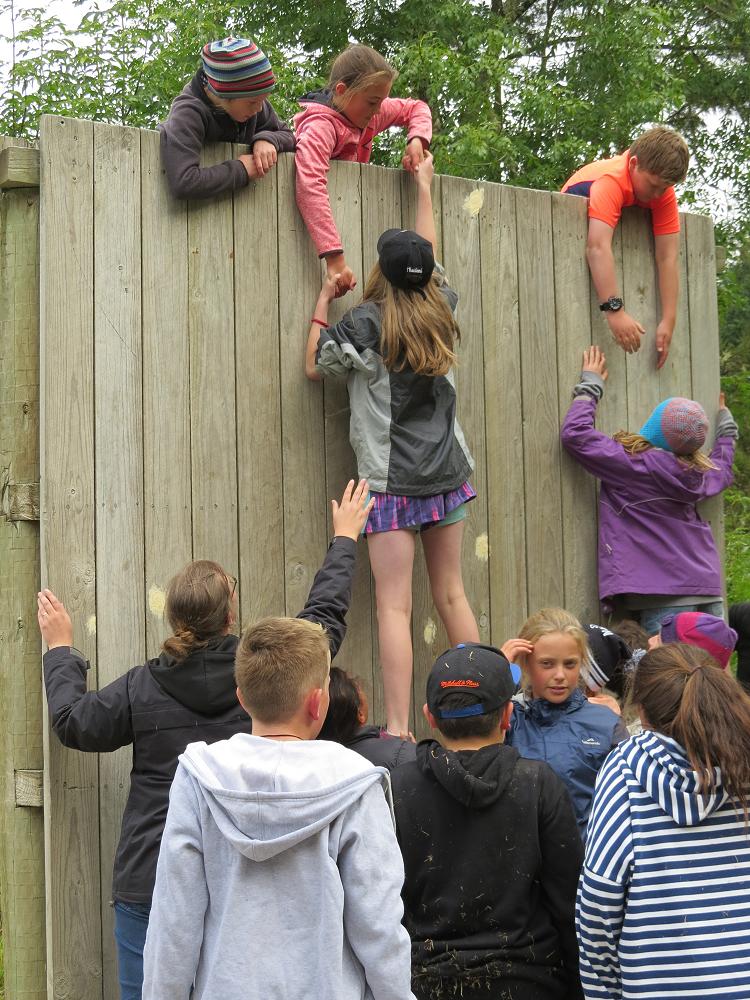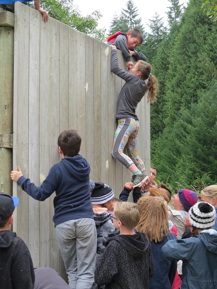 As I got to the top, my hands both slipped which caused me to fall from quite high up but all my friends were there and just as I was about to hit the ground they grabbed my arms and legs.They were holding me up off the brown pointy wood chips. They slowly placed me on the ground and I suddenly felt an urge to have another try. This time I made it over the wall successfully but 5 minutes later it was time for the Humongous wall everyone was a little bit nervous because this wall was so tall and if you slipped and fell like I did, it would be very scary!! My class did so well we got 21 out of 25 students up and over the giant wall. We didn’t spend loads of time at the walls, but enough to give it a go. I really enjoyed the walls because everyone showed great teamwork and were really supportive for the people who were scared of climbing up the walls.