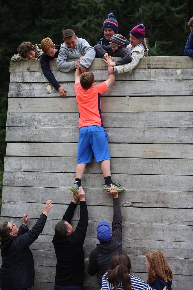The small wall was very easy to get over and no-one really needed help getting over, but for the medium wall things were a bit different. It was my turn on the medium wall, I got some of my friends to cup their hands together so I could slot my feet into them while the others said they would be there just in case.