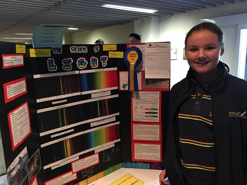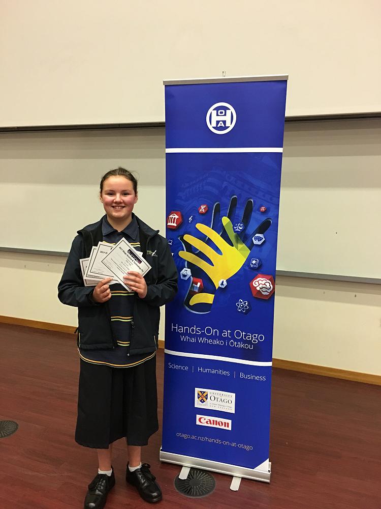 On Sunday 13th August The Otago Science Fair prize giving was held. Lots of schools were represented and Tahuna had 22 representatives. The event was held in the St David's lecture theatre and went from 3pm - 4pm. There were many award recipients from many schools across Otago with 27 from Tahuna. I received four awards: