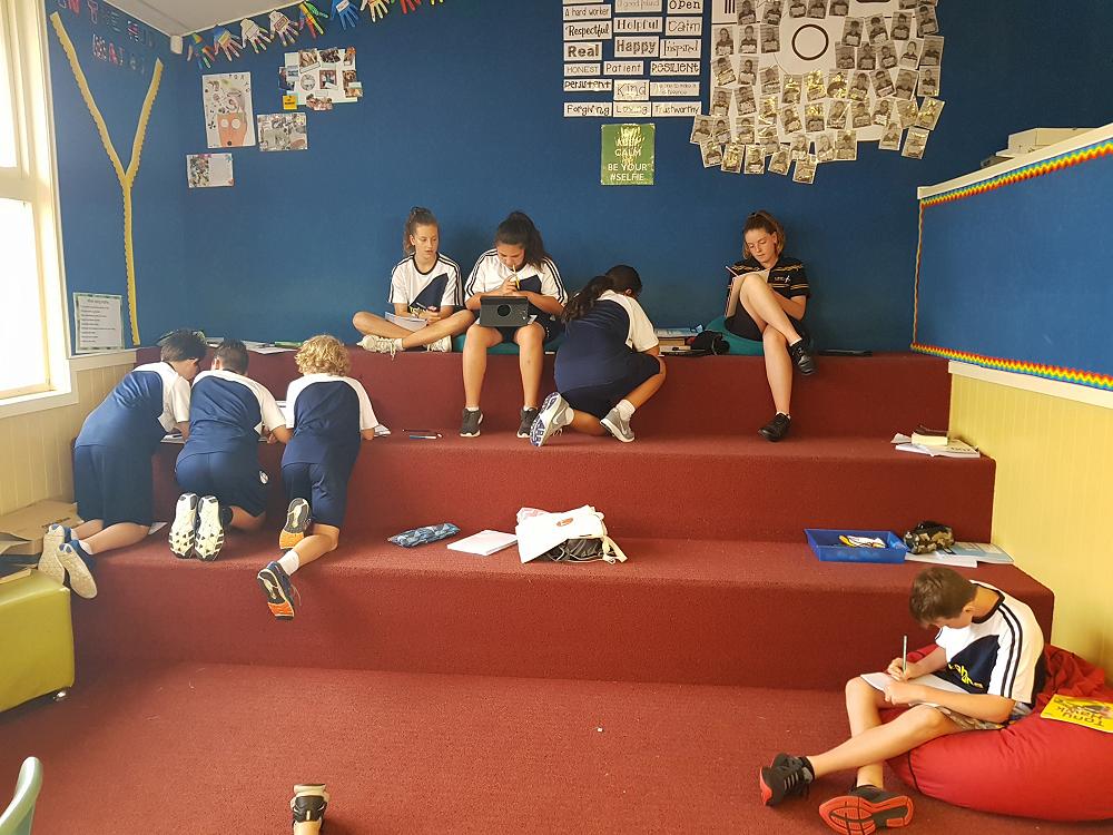 Deeper Learning: A collaborative classroom is key to help set students up for their future. Students develop the skills to listen and ask effective questions with exercises designed to scaffold deep, meaningful collaboration. Here are some students working collaboratively in 'The Hub' engaged in a high-level tasks, discussing, problem solving, possibly debating an issue, making shared decisions, and designing a product that demonstrates their deeper learning.