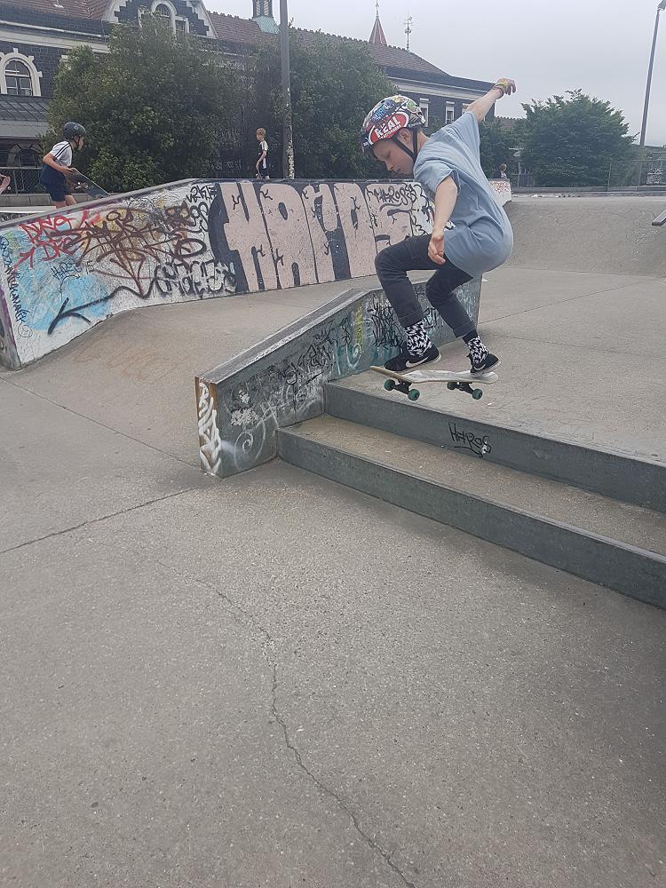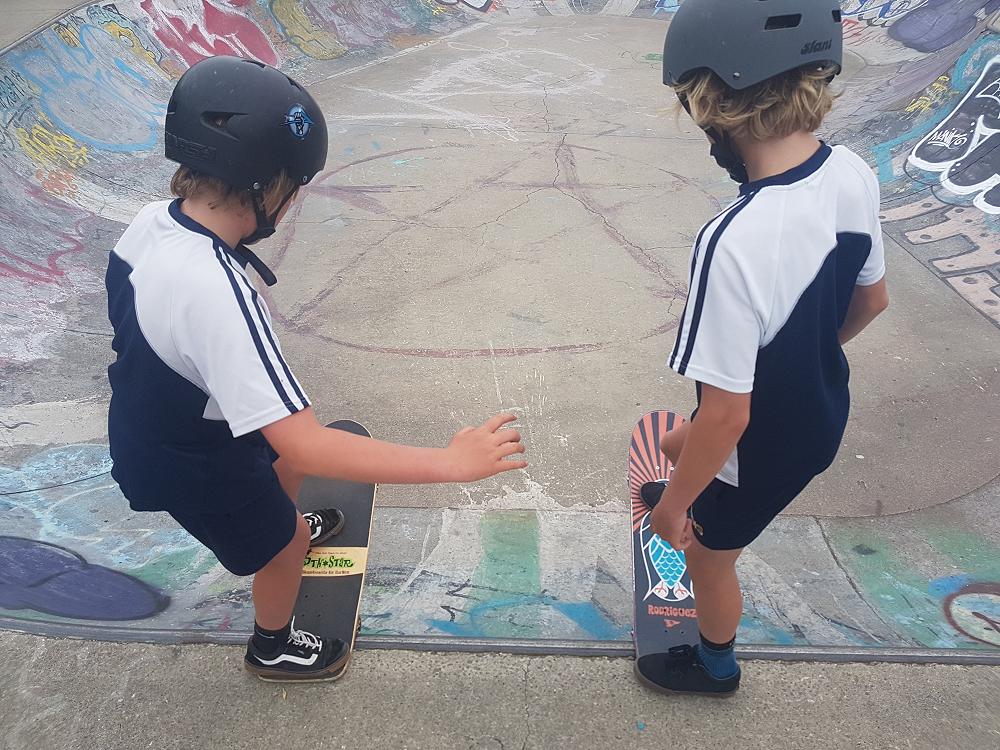 During the last two terms we have been participating in Mr Min's skateboarding \ scootering group held at lunchtimes. We met weekly on the courts and showed each other our latest tricks. We celebrated at the end by heading over to the park shredded it up in the bowls.