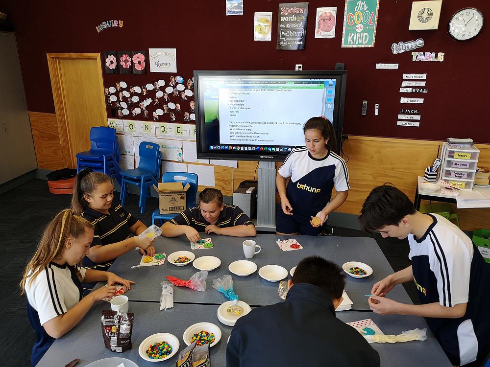 Task one was to decorate a biscuit using their school houses and their Māori symbols as inspiration.