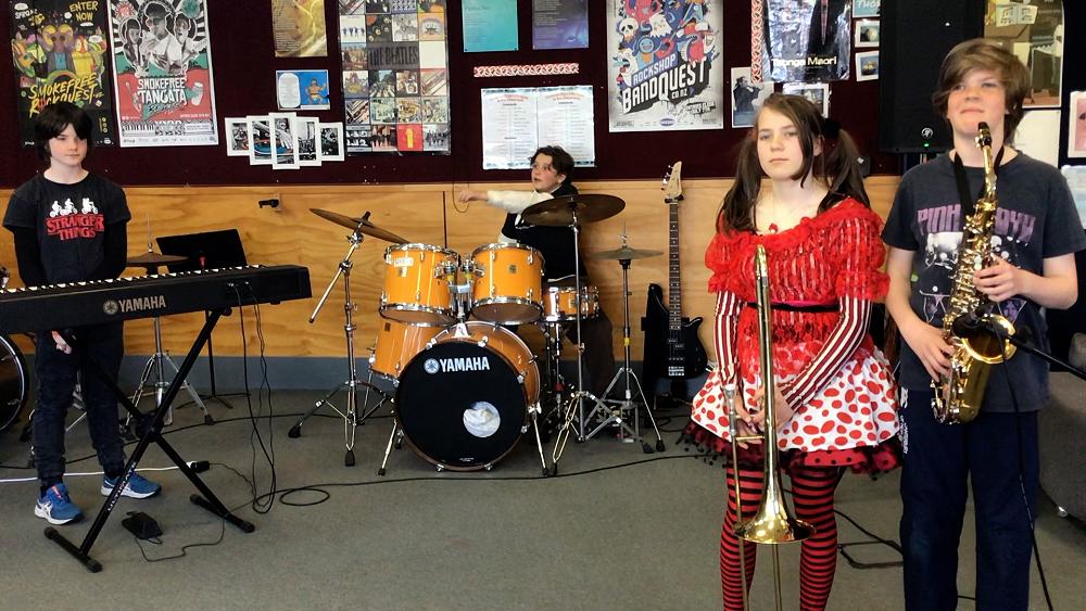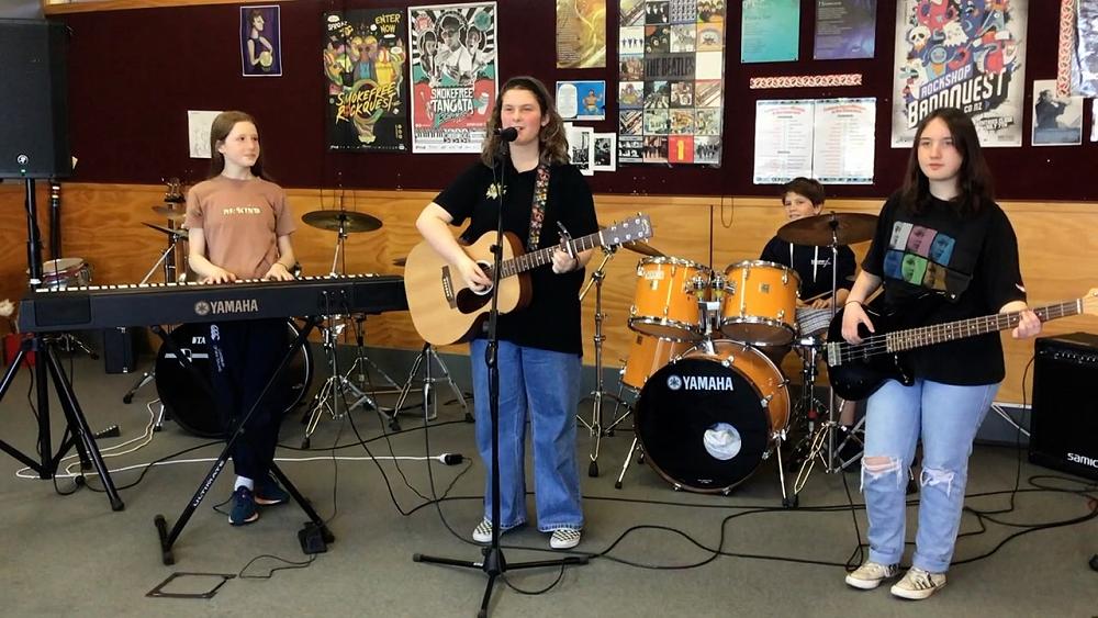 Queen Neptune is: Grace Gemmell - songwriter, guitar, vocals; Zoey Mathewson: keyboard; Taylor Garmonsway - bass; Ethan Wardrop - drums. Jazzaholics: Benji Egan - keyboard; Dylan Stringer - drums; Maisy Flynn - sax; Margo Latton - trombone.