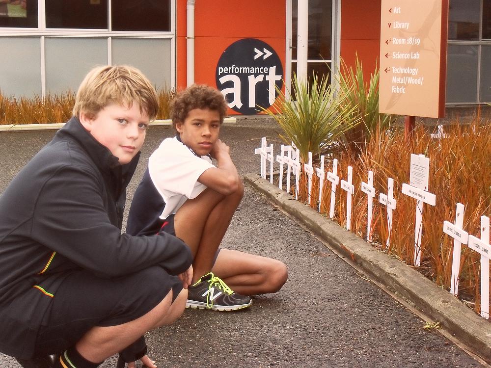 In the other clip Scott Glover and Ethan Hastie-Pinamonti check out Tahuna's very own field of remembrance that was put in place today and will remain in place for the week.