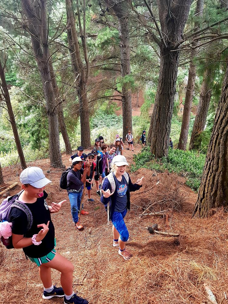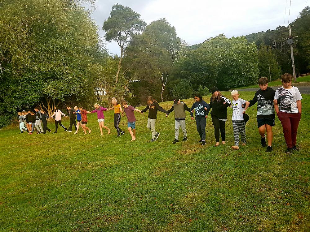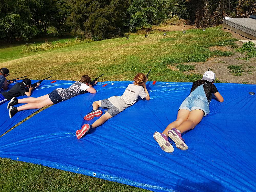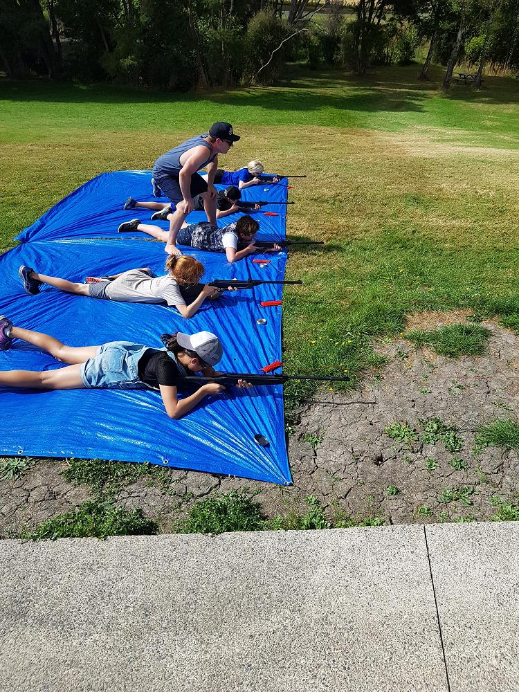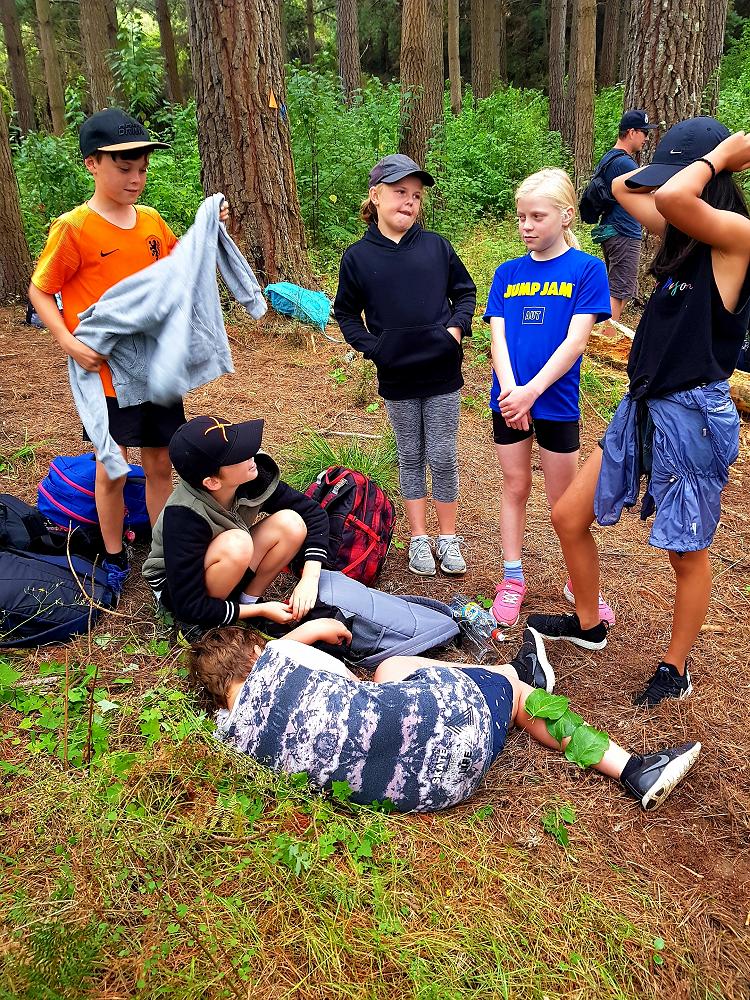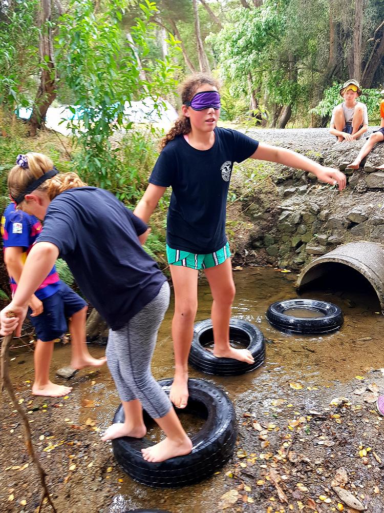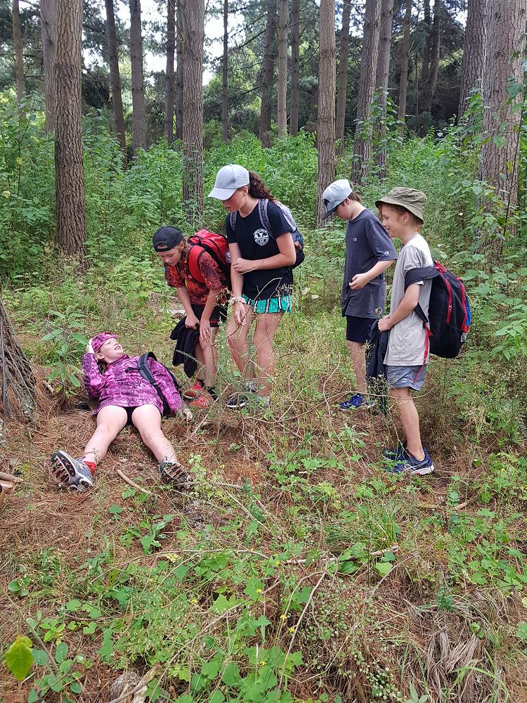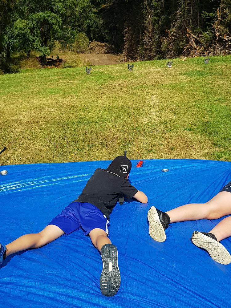 After a fun-filled night with Mr Lousley we didn't want it to come to an end! We played games, ventured off into the dark, night to see glow worms (they were incredible), spent time star gazing and finished off with a game of spotlight. We finally hit the hay about 10:30pm. Mrs McBride turned up in the morning and we were all still in our tents. We heard a big 'cock-a-doodle-doo' and knew it was just about time to start our day. Once we were out of our tents, we were straight into it. Mrs McBride made up a story about the easter bunny dropping bombs all over our camp though the night and we had to find them before they activated. Using our position and orientation skills, together we worked as a team and found all but one bomb. It was challenging but fun and we enjoyed our treat after the mahi! Then it was straight into cooking brekky before setting off on another tramp. We did a few search and rescue role plays, learnt some survival skills and sung songs along the way. The afternoon was spent participating in team building activities, which included the confidence course, grass skis, log and tyres and air rifles. It's fair to say shooting and the log and tyres were a massive highlight for most!! After another long day of hard work and warm temperatures we voted for the water slide to make another appearance. This time we challenged Mrs McBride to race us down. After watching Mr Lousley, Richard and Kris zoom down it yesterday, how could she say no!! It was burgers and oven chips for dinner tonight and yummy apple pie for dessert. Now we wait patiently with excitement to see what Mr Lousely has in store for us tonight.