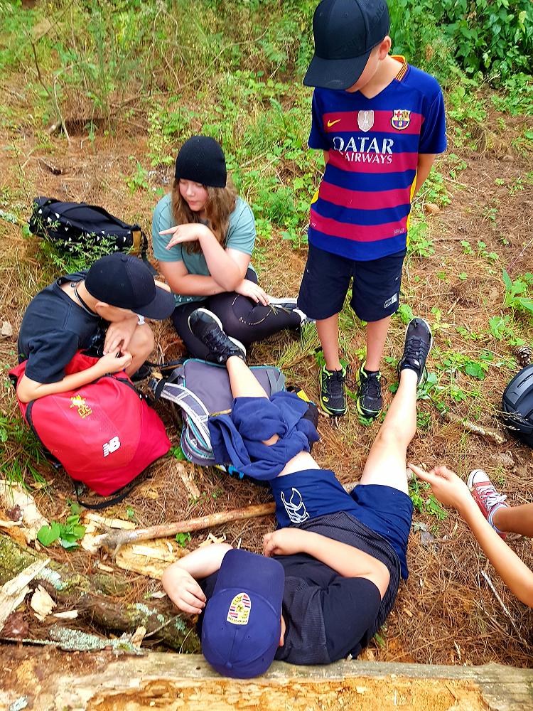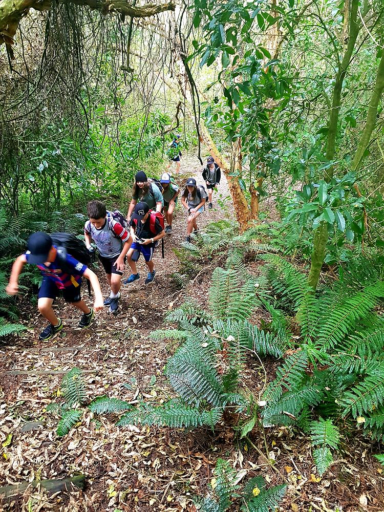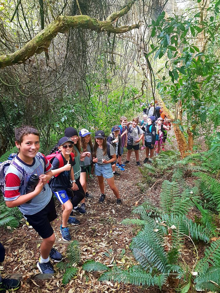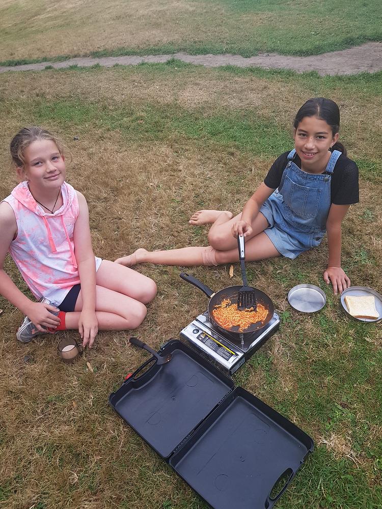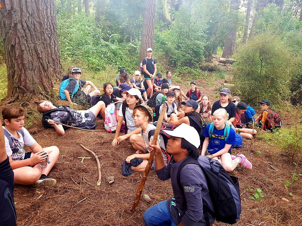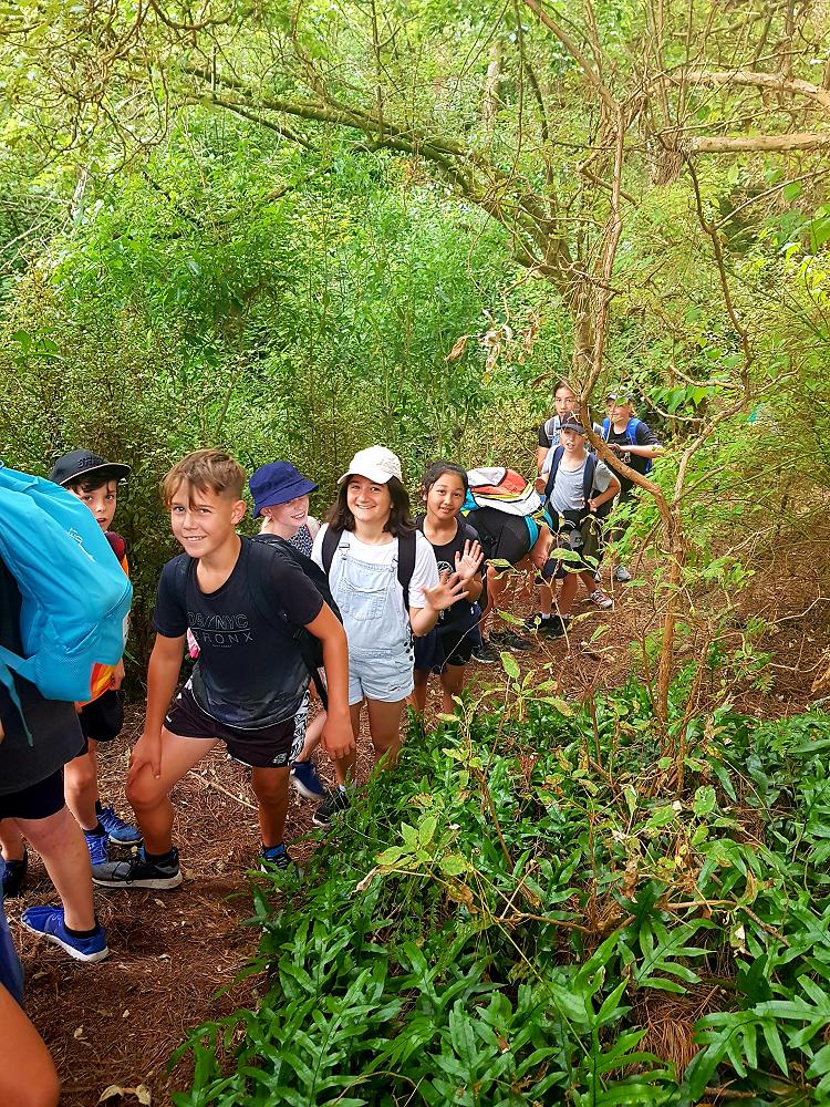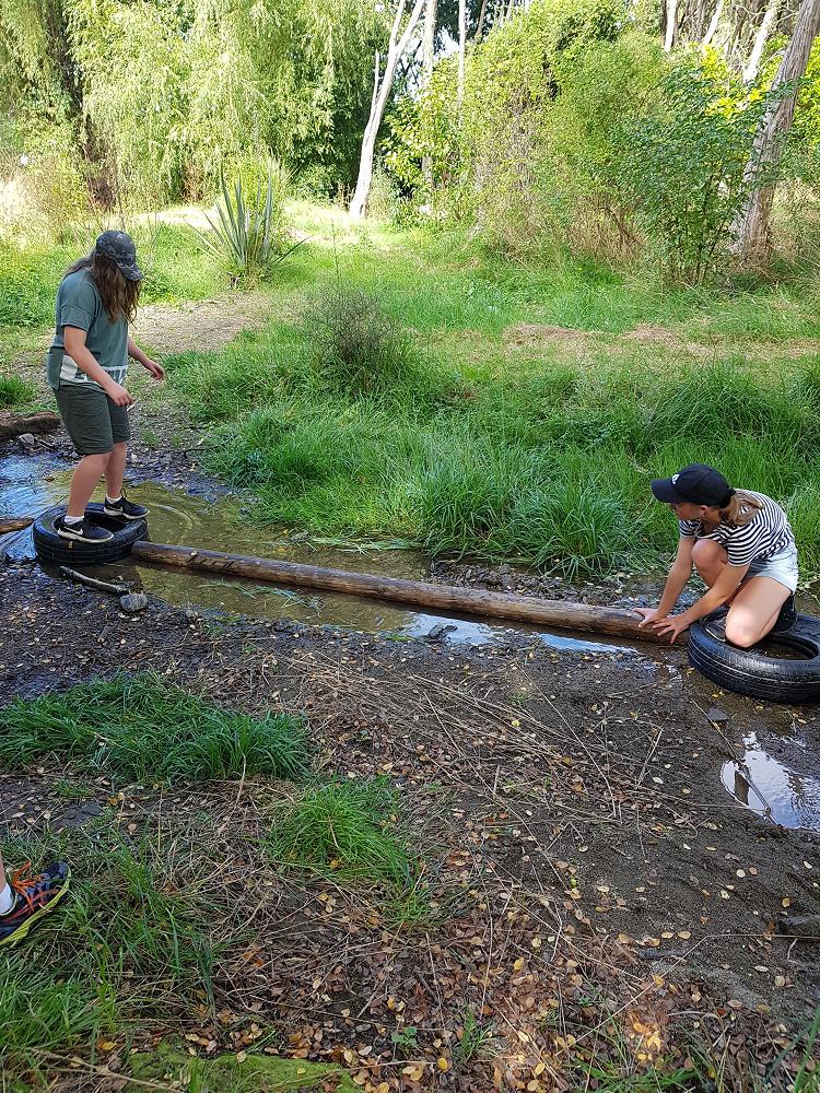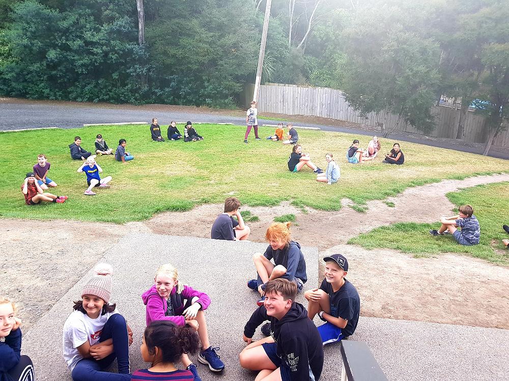 After a fun-filled night with Mr Lousley we didn't want it to come to an end! We played games, ventured off into the dark, night to see glow worms (they were incredible), spent time star gazing and finished off with a game of spotlight. We finally hit the hay about 10:30pm. Mrs McBride turned up in the morning and we were all still in our tents. We heard a big 'cock-a-doodle-doo' and knew it was just about time to start our day. Once we were out of our tents, we were straight into it. Mrs McBride made up a story about the easter bunny dropping bombs all over our camp though the night and we had to find them before they activated. Using our position and orientation skills, together we worked as a team and found all but one bomb. It was challenging but fun and we enjoyed our treat after the mahi! Then it was straight into cooking brekky before setting off on another tramp. We did a few search and rescue role plays, learnt some survival skills and sung songs along the way. The afternoon was spent participating in team building activities, which included the confidence course, grass skis, log and tyres and air rifles. It's fair to say shooting and the log and tyres were a massive highlight for most!! After another long day of hard work and warm temperatures we voted for the water slide to make another appearance. This time we challenged Mrs McBride to race us down. After watching Mr Lousley, Richard and Kris zoom down it yesterday, how could she say no!! It was burgers and oven chips for dinner tonight and yummy apple pie for dessert. Now we wait patiently with excitement to see what Mr Lousely has in store for us tonight.