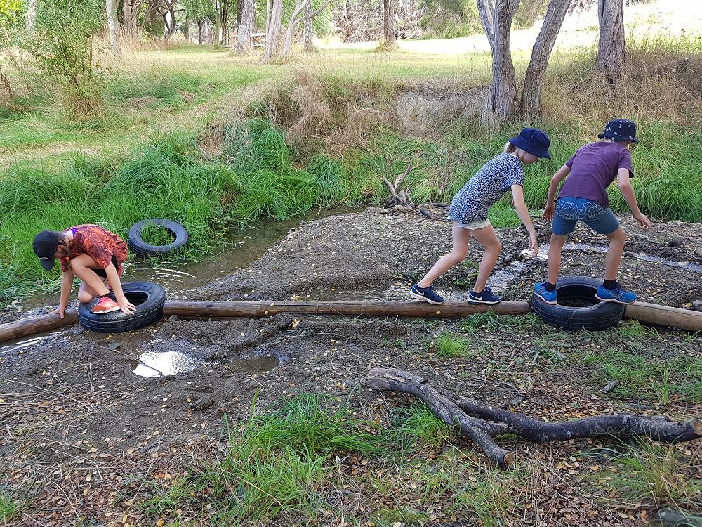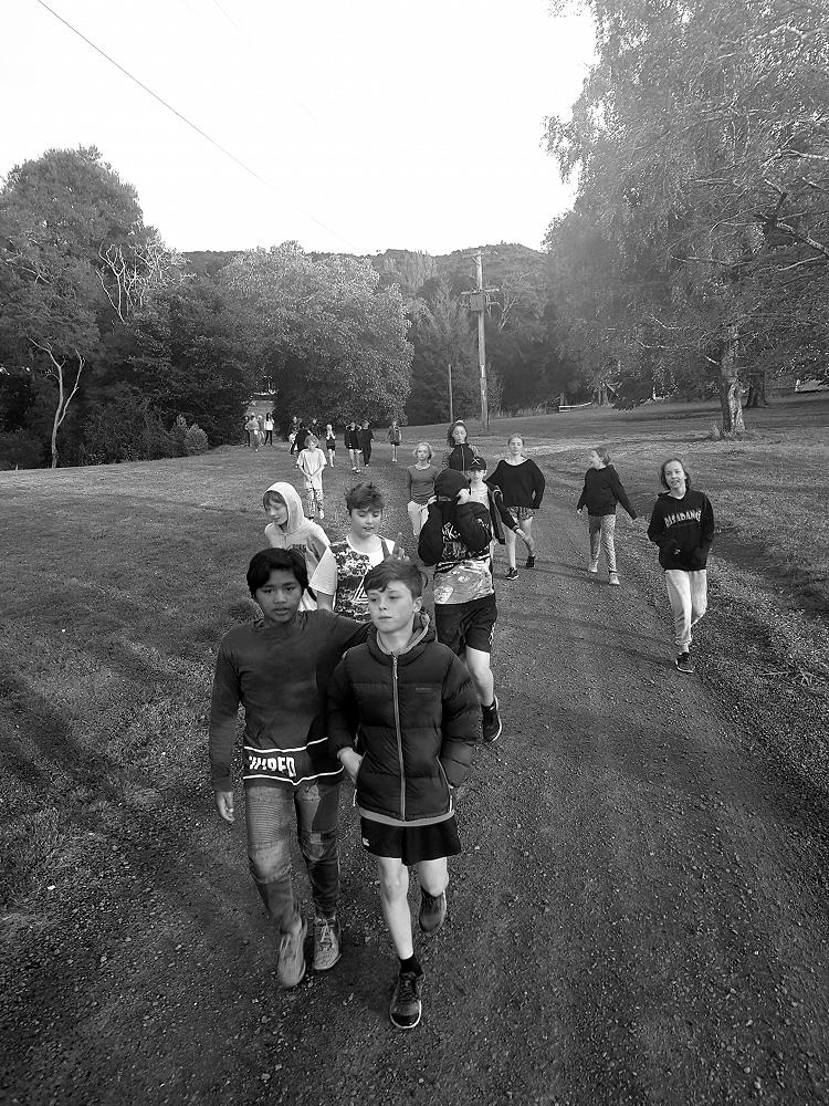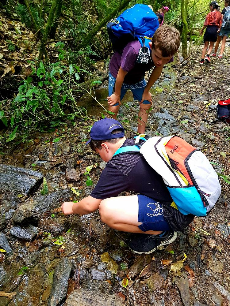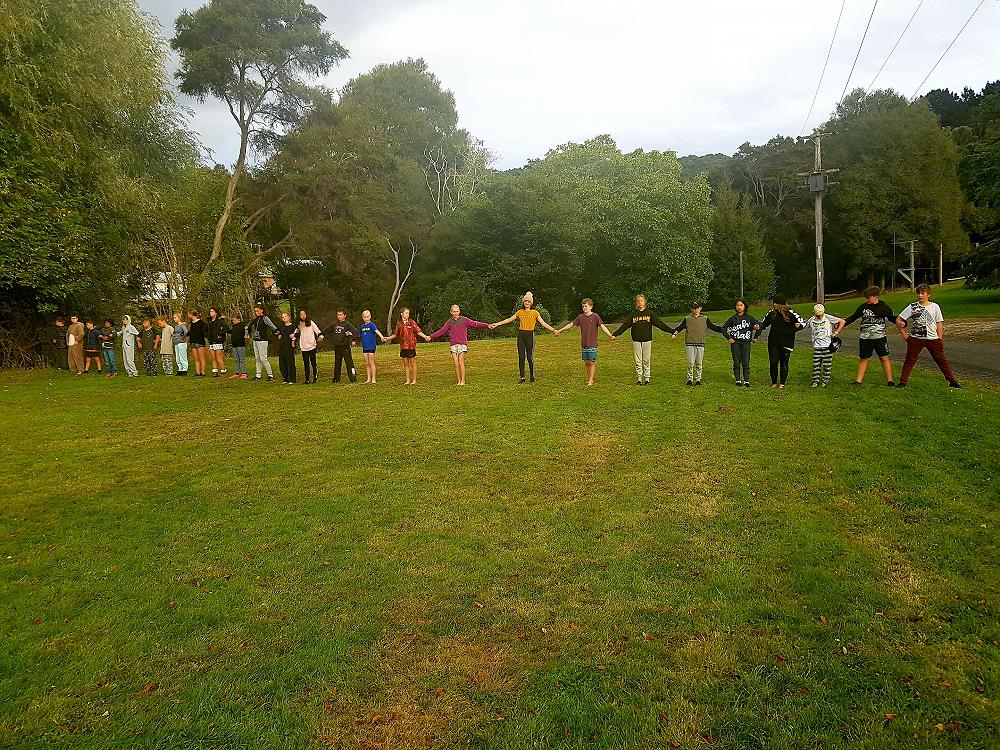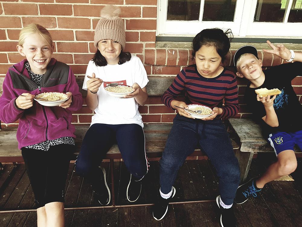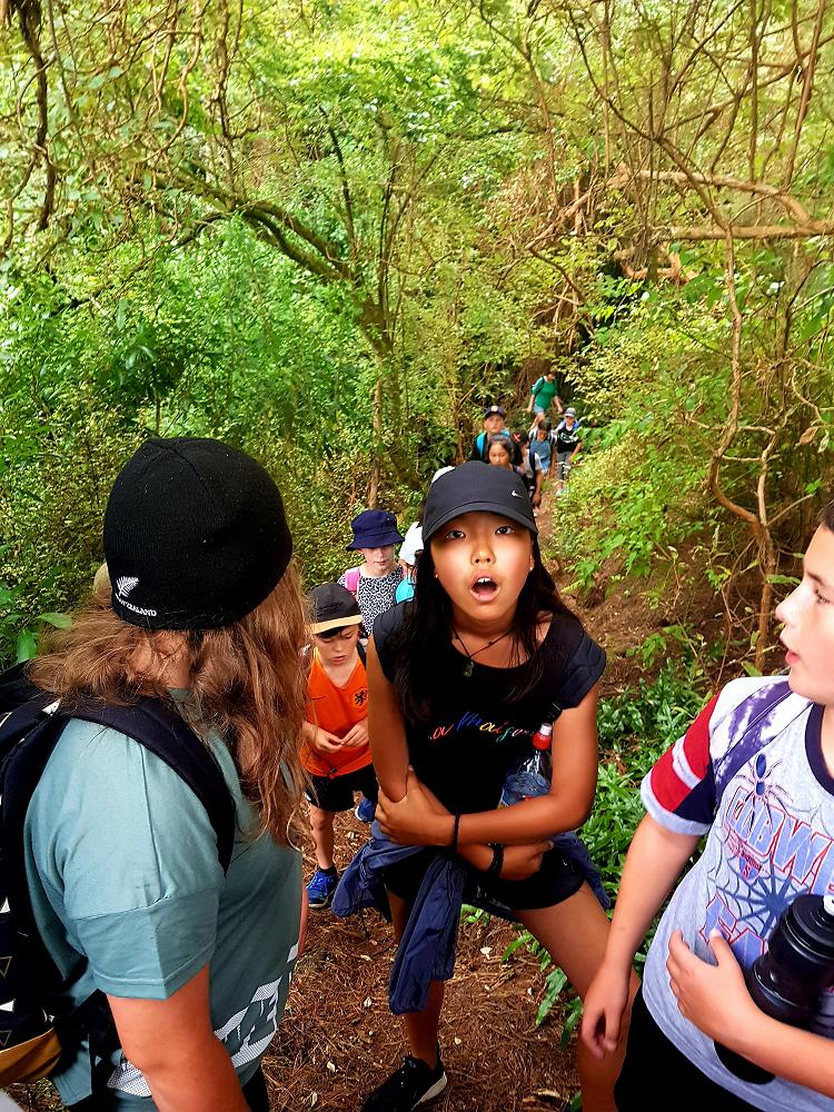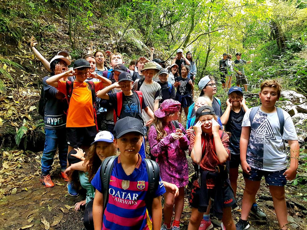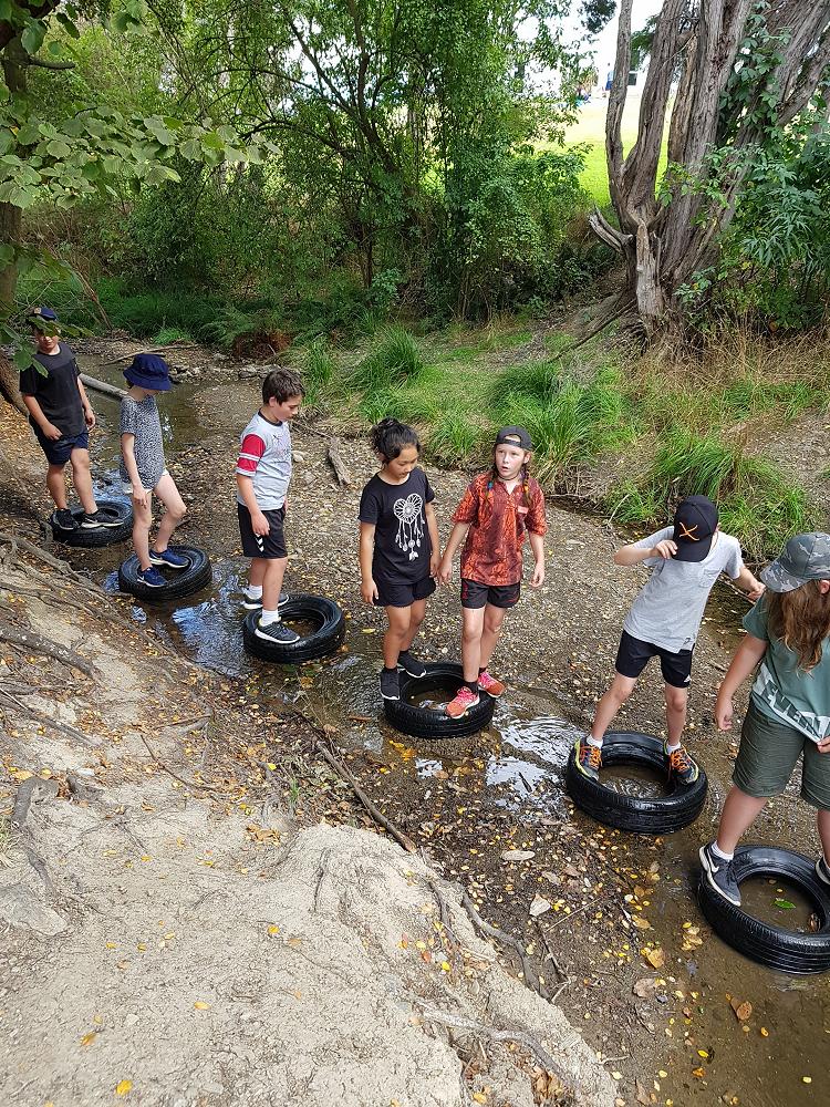 After a fun-filled night with Mr Lousley we didn't want it to come to an end! We played games, ventured off into the dark, night to see glow worms (they were incredible), spent time star gazing and finished off with a game of spotlight. We finally hit the hay about 10:30pm. Mrs McBride turned up in the morning and we were all still in our tents. We heard a big 'cock-a-doodle-doo' and knew it was just about time to start our day. Once we were out of our tents, we were straight into it. Mrs McBride made up a story about the easter bunny dropping bombs all over our camp though the night and we had to find them before they activated. Using our position and orientation skills, together we worked as a team and found all but one bomb. It was challenging but fun and we enjoyed our treat after the mahi! Then it was straight into cooking brekky before setting off on another tramp. We did a few search and rescue role plays, learnt some survival skills and sung songs along the way. The afternoon was spent participating in team building activities, which included the confidence course, grass skis, log and tyres and air rifles. It's fair to say shooting and the log and tyres were a massive highlight for most!! After another long day of hard work and warm temperatures we voted for the water slide to make another appearance. This time we challenged Mrs McBride to race us down. After watching Mr Lousley, Richard and Kris zoom down it yesterday, how could she say no!! It was burgers and oven chips for dinner tonight and yummy apple pie for dessert. Now we wait patiently with excitement to see what Mr Lousely has in store for us tonight.