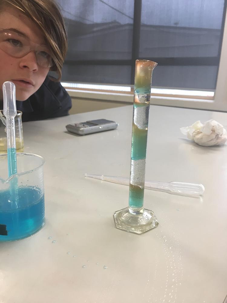 On Tuesday we had science with doctor Dave. Our task was to layer liquids on top of each other with the densest at the bottom and lightest at the top. We proceeded with the experiment, layering each liquid on top of each other. In the end, Room 9 broke the previous record of 12 layers with a new high record of 14!!! The way that they got so many layers was because they were mixing together the substances, like methanol, water, oil, and copper sulphate.