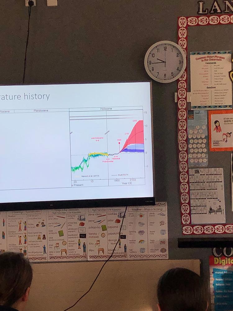 Our syndicate were lucky enough to get the geology department to come teach us about climate change and the past. My group had Chris May, he investigates the earth and climate change and taught us about the earths temper history and we went thousands of years back to see how hot and cold it was, in one of the years it was warmer than it is currently, which is VERY hot. We are so grateful to have had the geology department come and teach us.