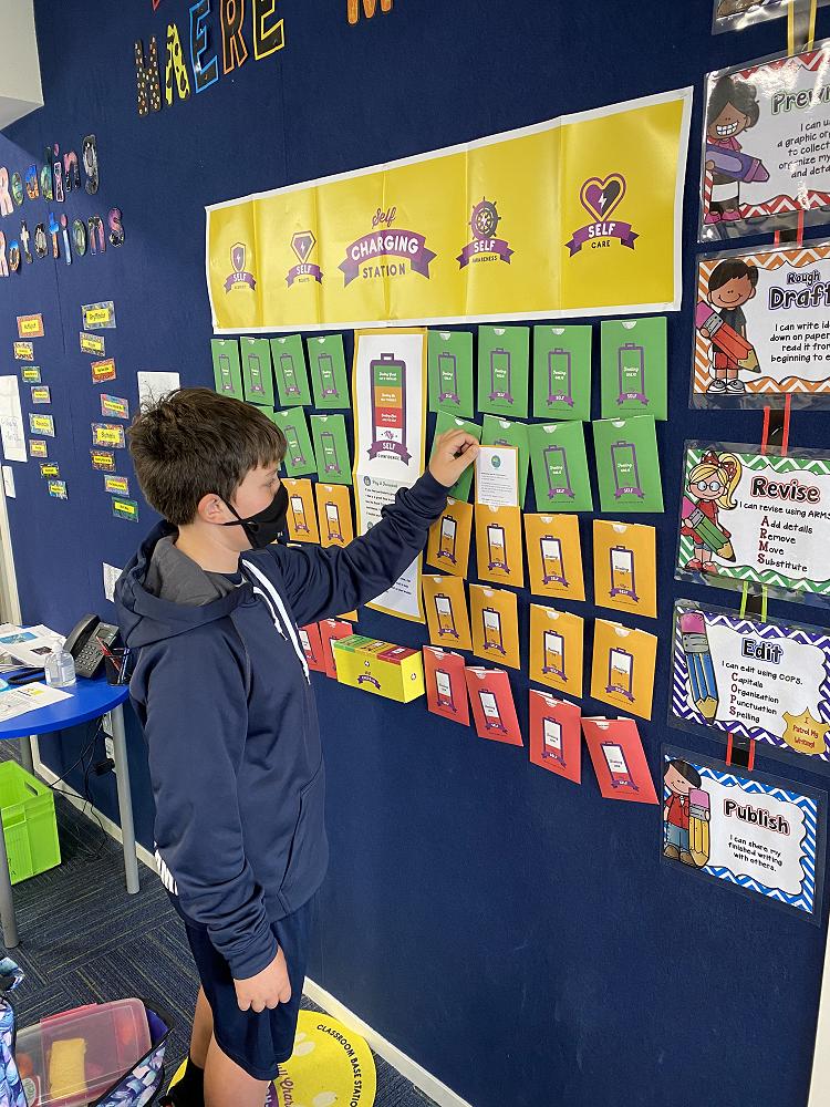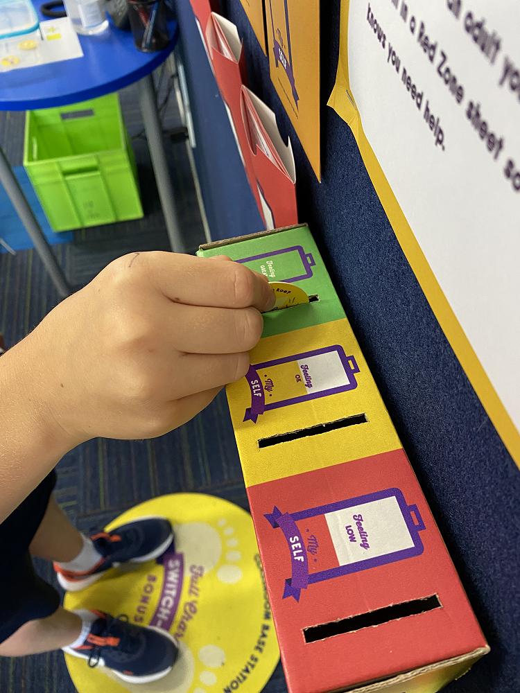 In the last 2 weeks Room 6 has been using “The self charging station”, this is where we come in each morning and pick up our own little token, and put them in a green box, a yellow box or a red box.