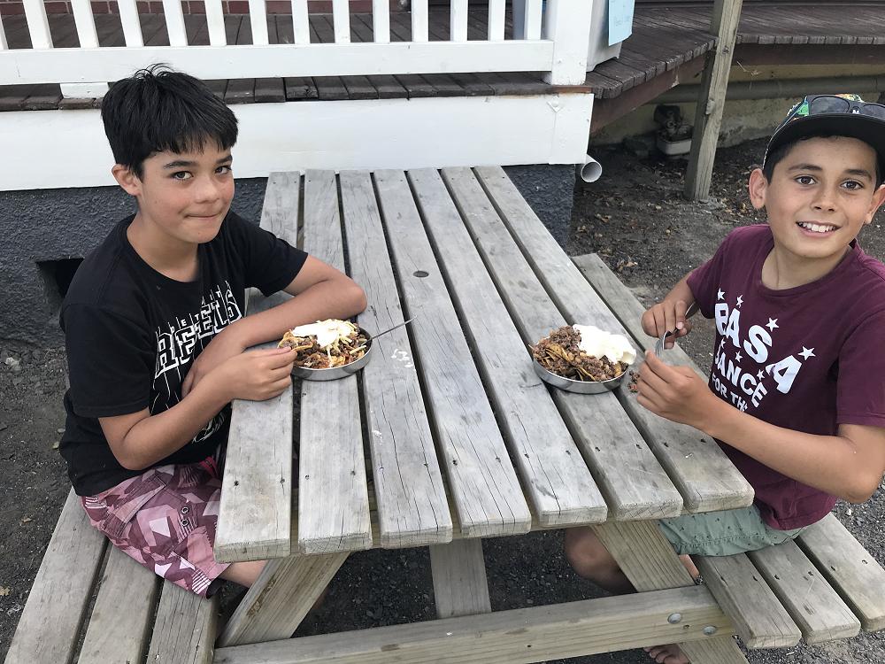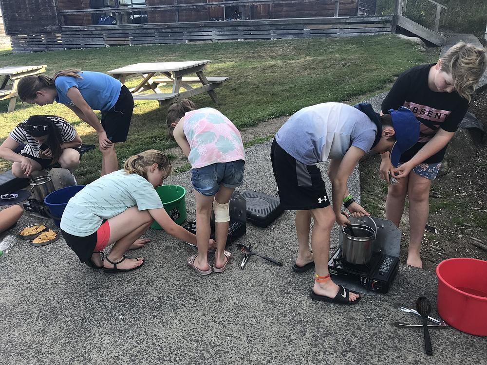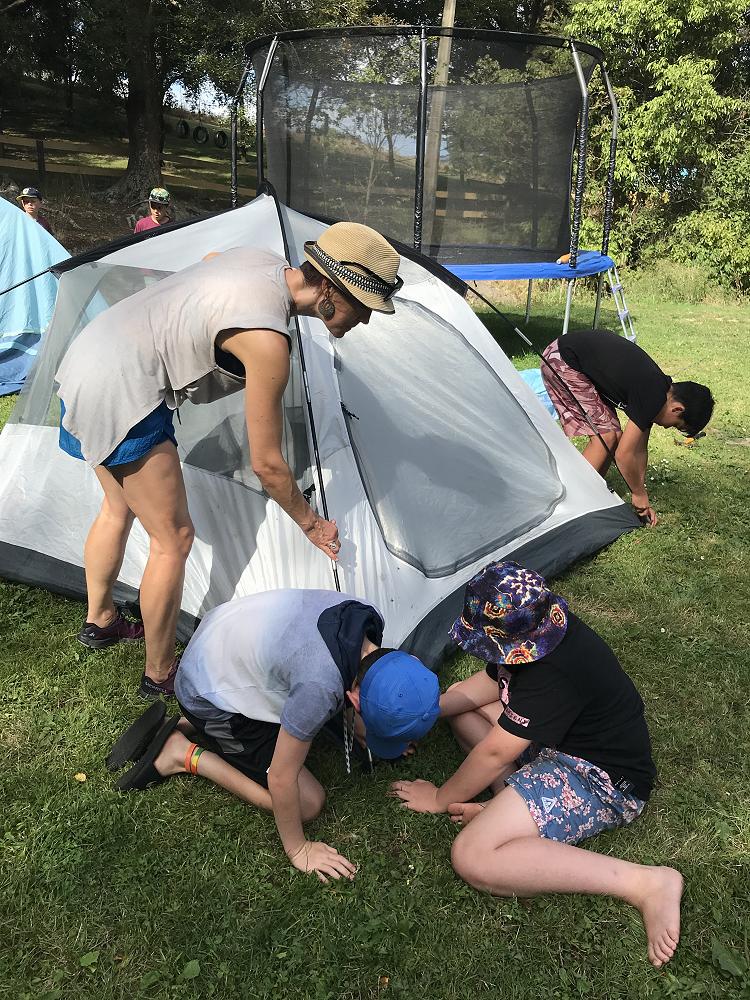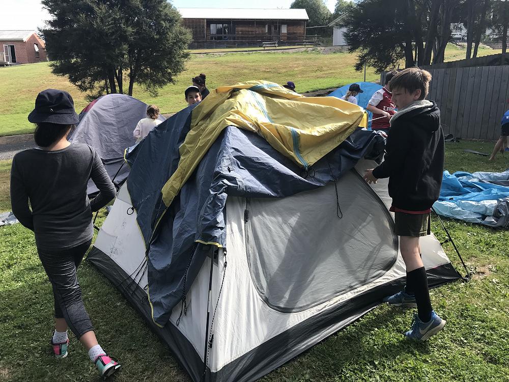 Team work! We worked together in our groups to set up our tents and cook our dinner.
