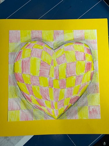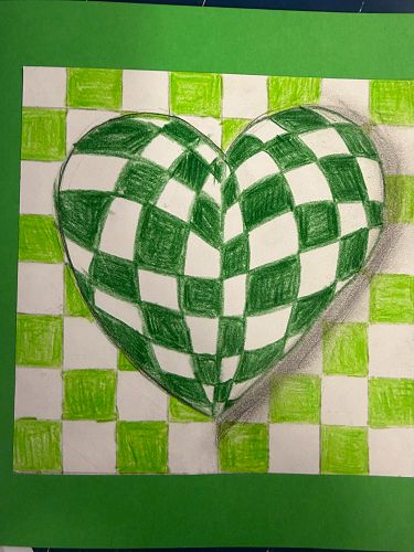 The Year 7 illusions with hearts have been very effective, also learning about the Elements of Art and applying pastel techniques, focusing on using lines to show movement and colour.