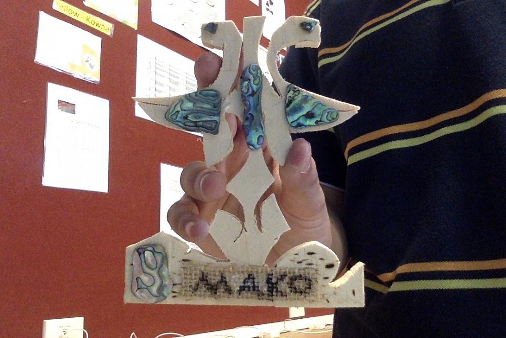 We had to use paua shell, wood, hessian and the hot poker to create a maori artifact but.....we only had one lesson to do it in. It wasn't easy, and not everybody in our roopu or group, completed their creation. It was still a lot of fun particularly as we got to work with students from other classes outside our normal Tech groups.