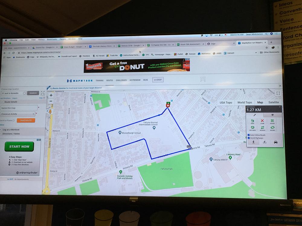 As is often the case some students can struggle with having a deep understanding of the difference between a shape's perimeter and its area. In class we discussed the shape of the block around Tahuna, it was measured and we found the perimeter and the area in square metres. I was looking for an activity that supported this learning and also linked to fitness with a medium term goal for all of the students to achieve at their own pace.