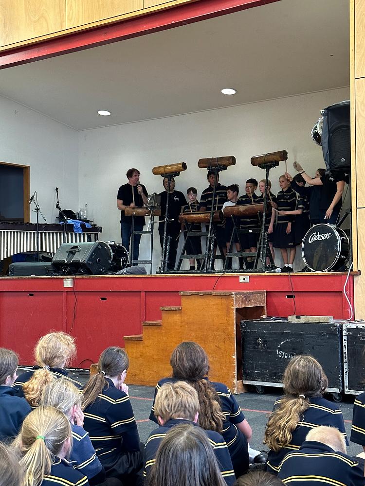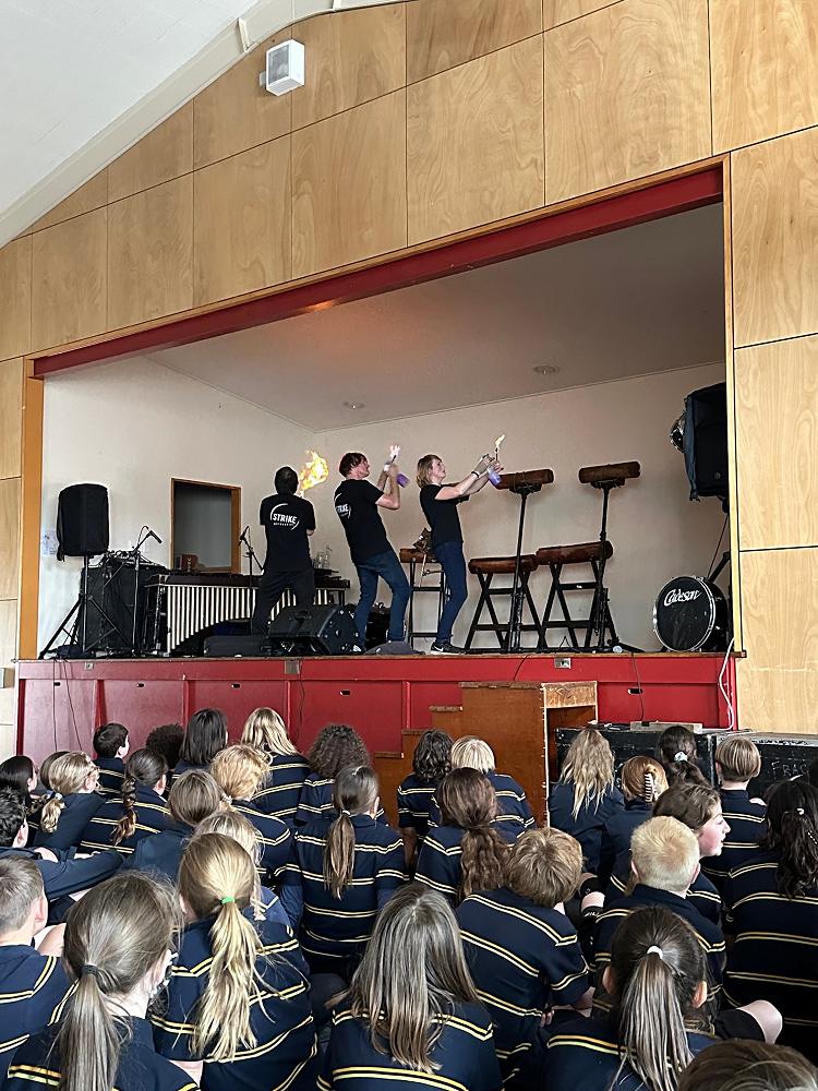 Wellington-based STRIKE BAND came to school this week to entertain the children.