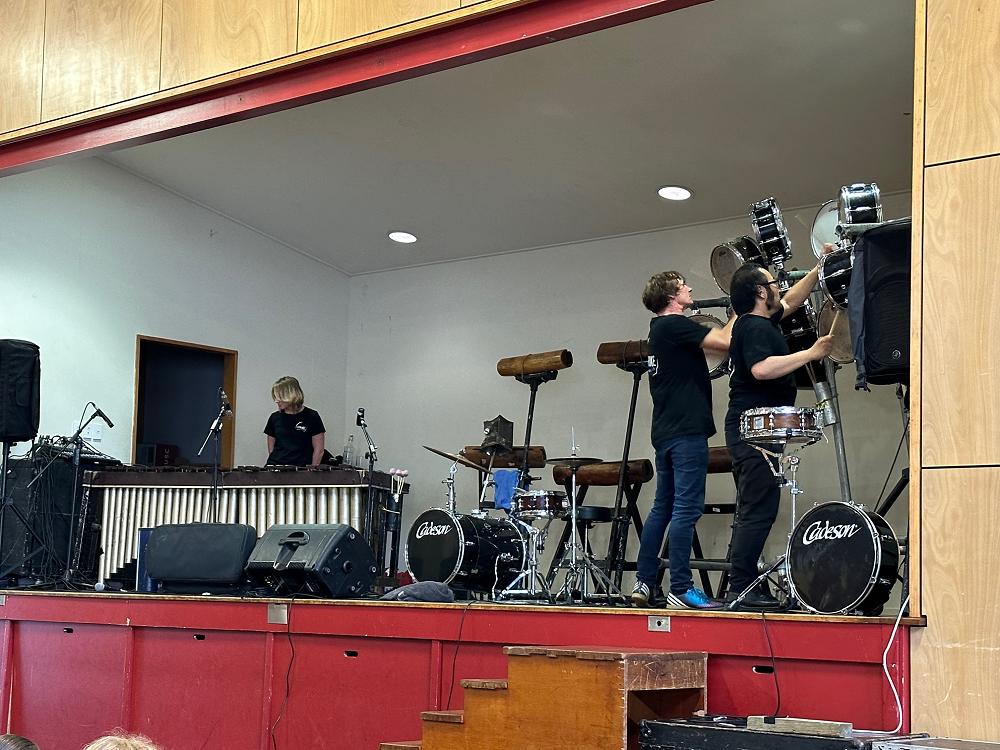 The band specialises in choreographed percussion and had set the stage up so the children could see the variety of drums being played. They even used methylated spirits, spray bottles and flames to choreograph a percussive piece of music.