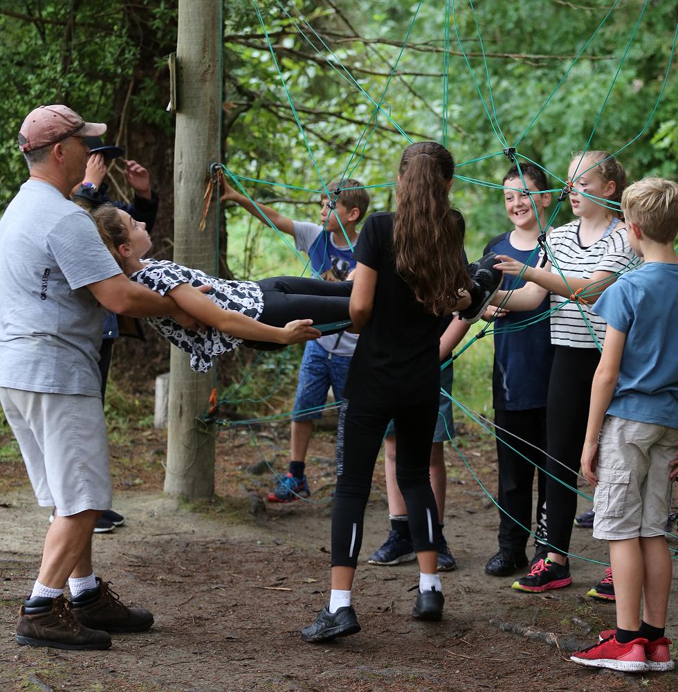 Then there was the spider web were there was a rope that looked like spiders web, you had to get through the holes without touching the rope some people had to go through the top you had to lift the person up to get them through otherwise you would go through the bottom.