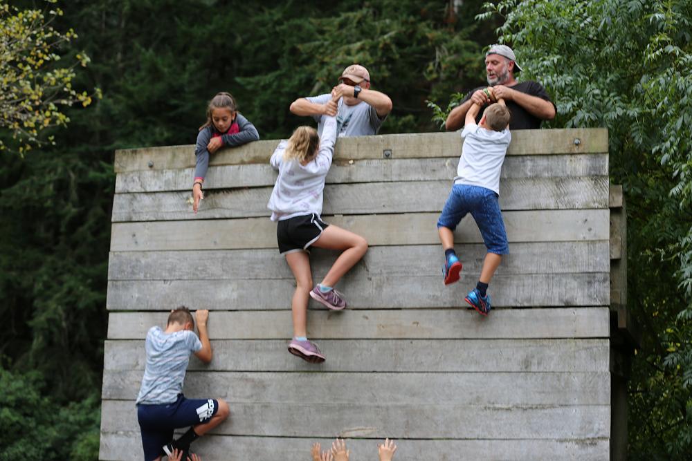 There are three walls at Camp Berwick, the first one was small not too hard but fun, the next one was a little bigger than the small one i didn’t do it though ‘cause i’m scared of heights but everyone did what they can to help, then there was the tallest one the parents were at the top [and some students who got up first and a little later] helped the people coming up.