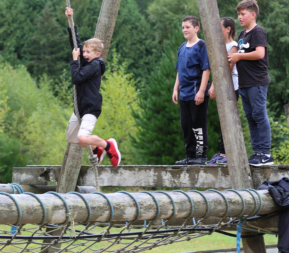Next we did the rope swing, where we had to swing across on a rope just like Tarzan but had to land on a wooden board, it tested our cooperation with each other.