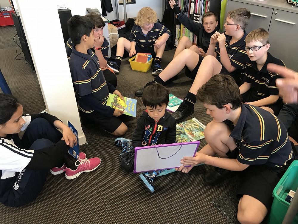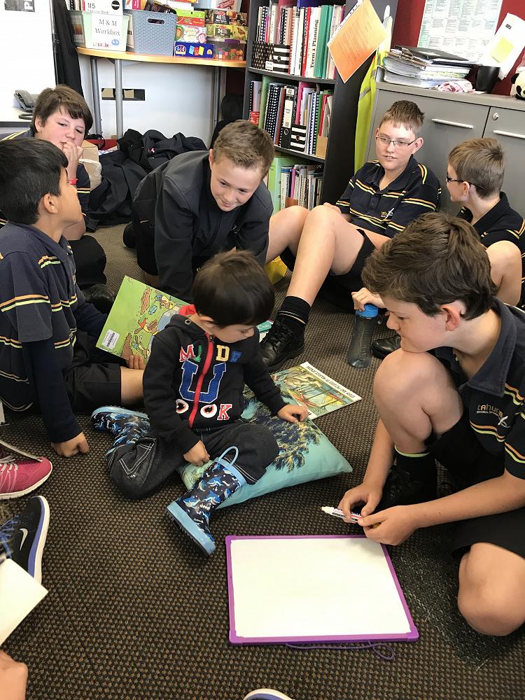 Last Friday a group of kids came to Rm 6 for a story but who was going to read this story? Rm6 themselves! Each kid from Rm6 got put into 4 groups and each had to bring a kids picture book that they read as a child. When the 4 kids aged between 2 and 4 years old came in one being Mrs. Stuart's daughter they all split up and one kid went into each group. As the kids sat down all groups made themselves comfortable and introduced the kids to Rm6’s kids. While we read them the books that we brought from home we got them a whiteboard and pen to draw pictures. Everyone was having fun but most of the little kids were a bit shy but that's ok because they are little kids and not used to being in a room with people they have never seen before. When they left everyone was disappointed to see their cute faces leave. It was good to have these kids come into our class as it helped us decide what our target audience for our own picture books would be. Now its our turn to create our own picture books. By Ollie.B