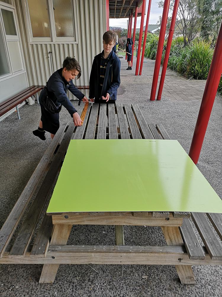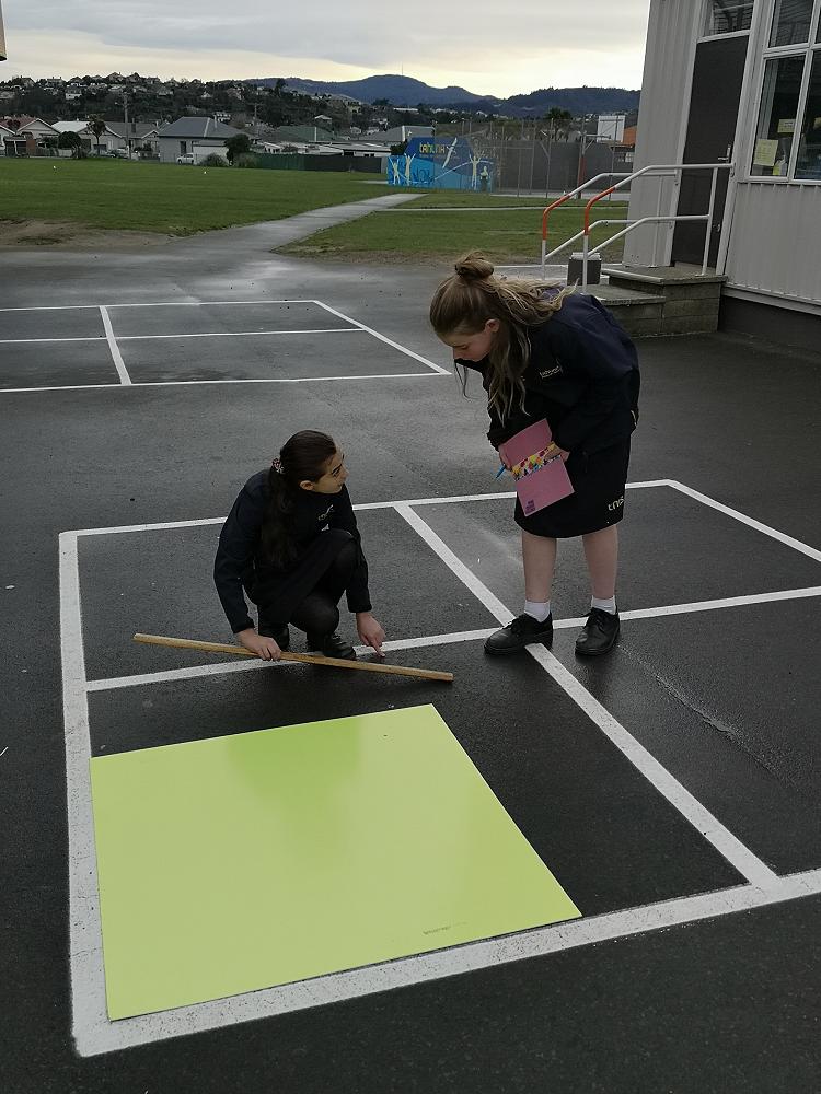 Windows, picnic tables, the walls of a classroom and the 4 Square game were all measured. It was great to see groups using the learning from their maths classes in a practical setting.
